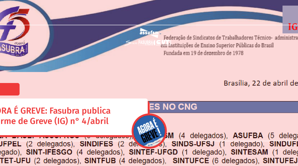 No dia 22 de abril, a Fasubra publicou o quarto Informe de Greve (IG), do mês de abril.