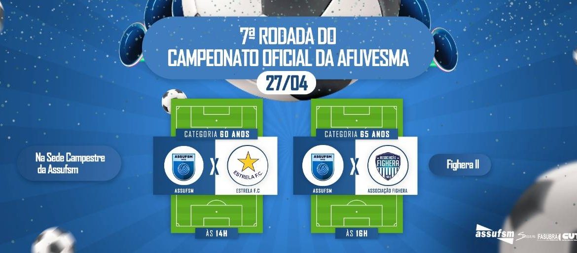 ⚽ Na sexta rodada do campeonato Afuvesma (Associação de Veteranos de Santa Maria), que aconteceu no último sábado (20) na Sede Campestre da Assufsm, a categoria dos 60 anos da Assufsm enfrentou o MONTESE/APUSM. A partida encerrou em 0 x 1 para o time visitante. Na categoria dos 65 anos, o time da Assufsm levou vantagem, finalizando em 4×1 contra o A.A. FERROVIÁRIA.