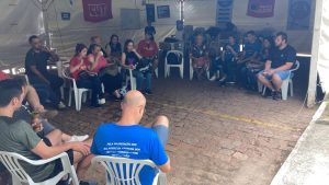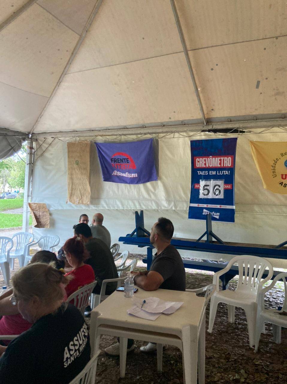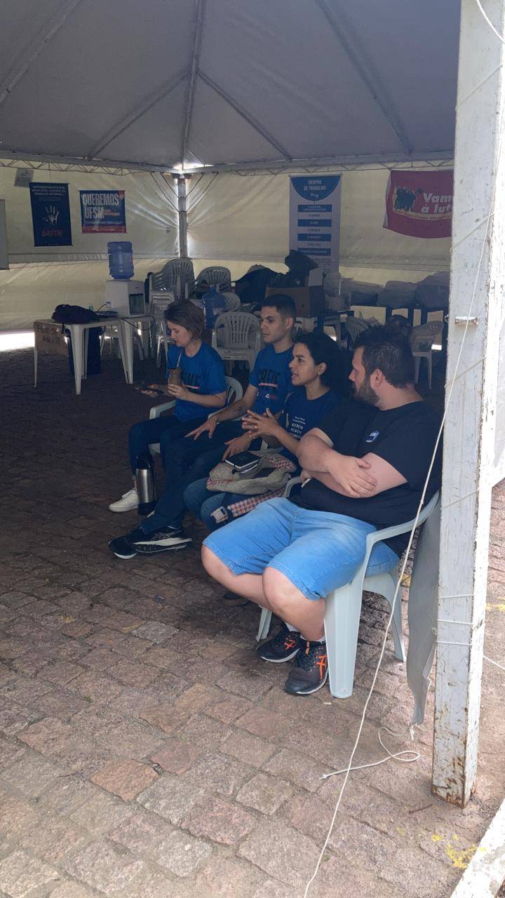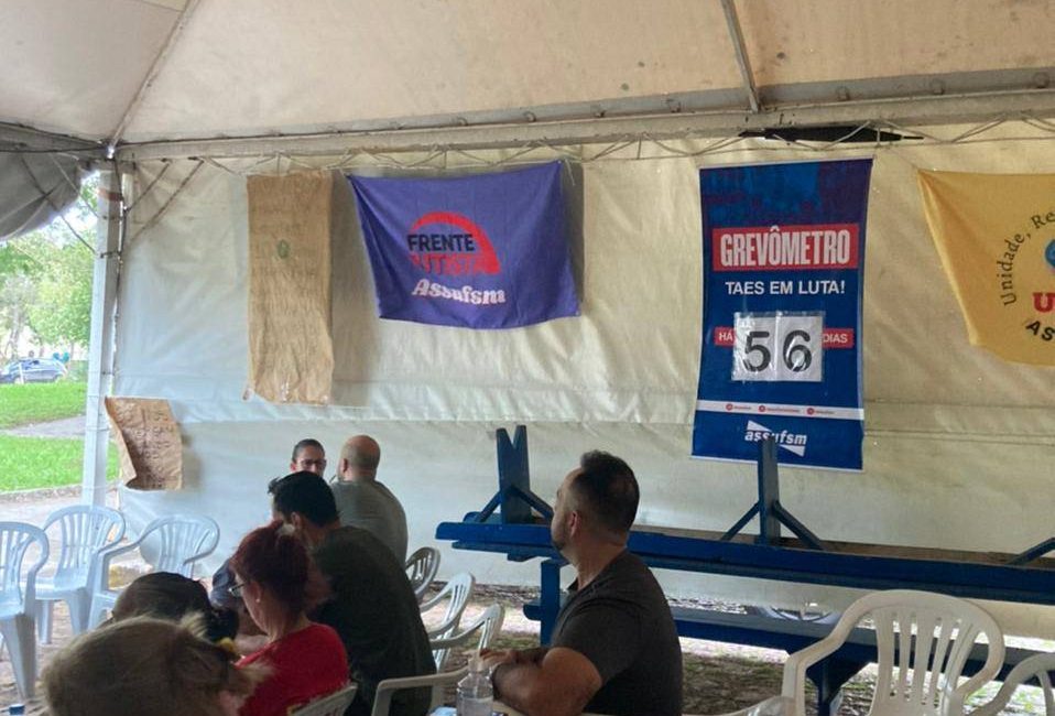Em seguida, o CLG realizou reunião presencial no lonão da greve, instalado em frente ao Centro de Ciências Naturais e Exatas (CCNE). Como encaminhamento da reunião, amanhã serão realizadas duas ações sociais às vítimas das enchentes, uma pela manhã e outra na parte da tarde. Tanto a reunião do CLG – que aconteceria a partir das 9h no lonão – quanto a Assembleia – que estava marcada para acontecer às 14h – foram canceladas.