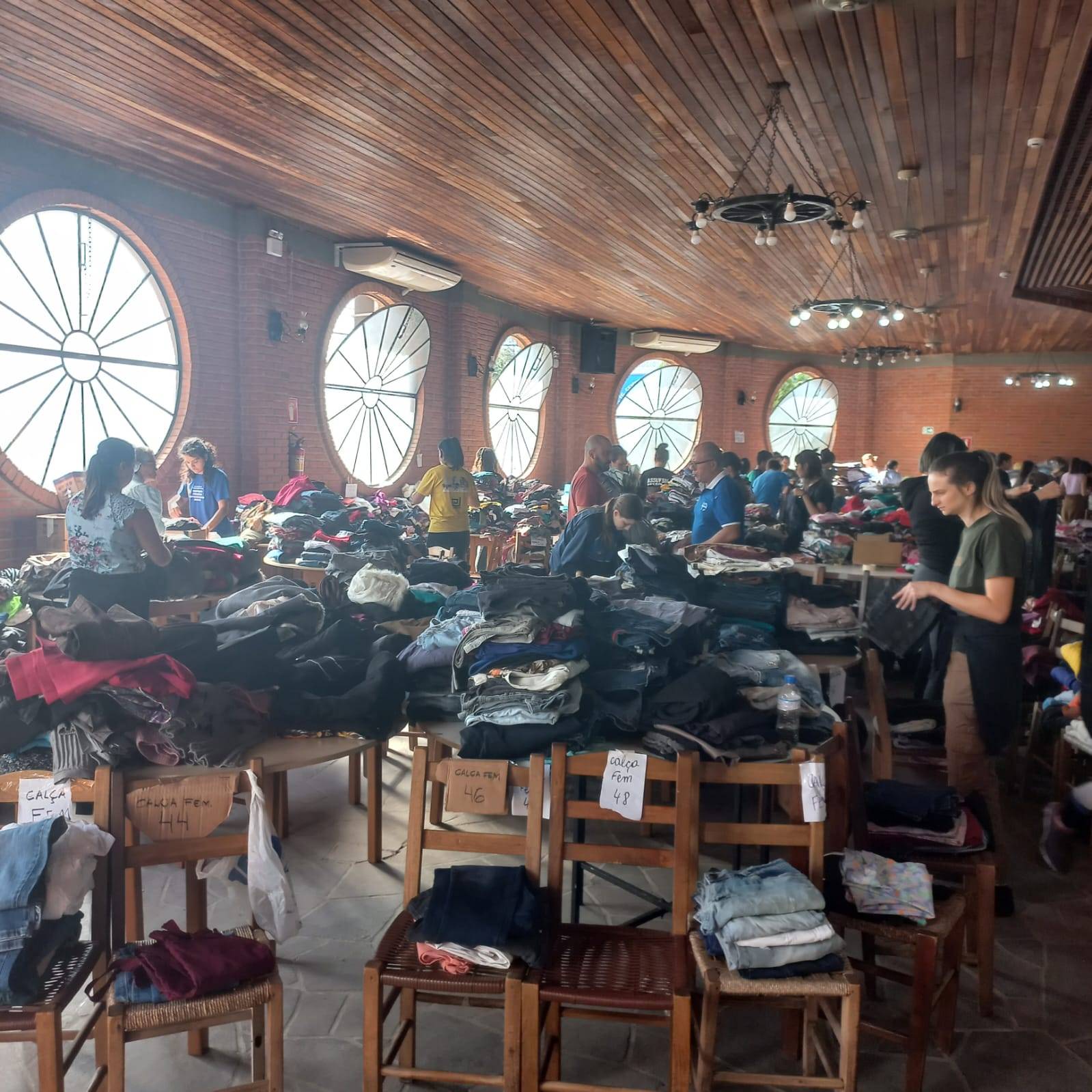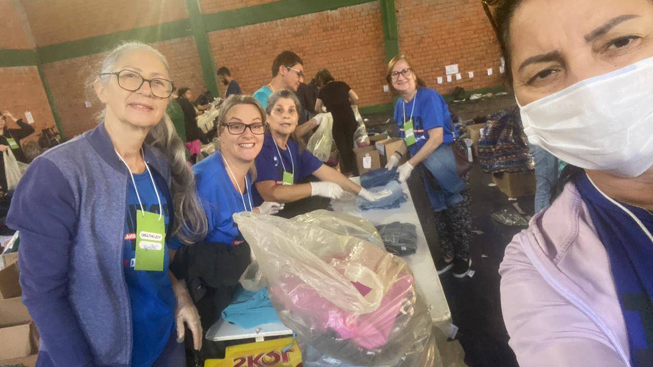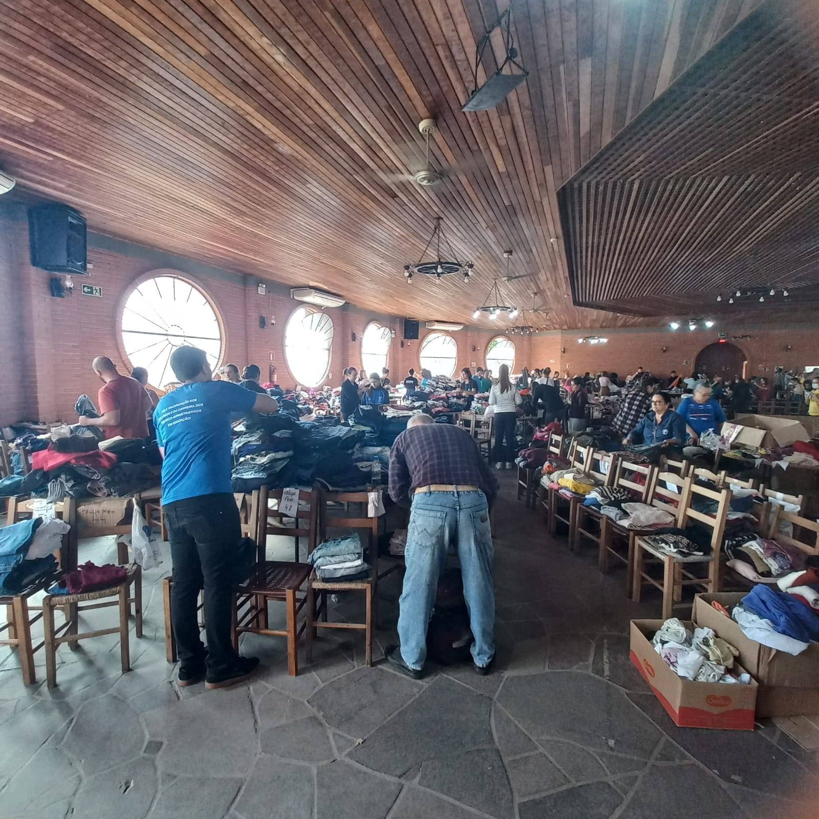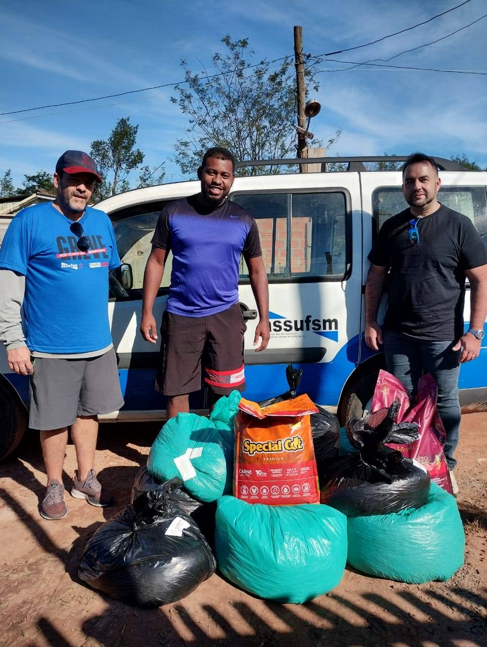 Nesta quinta-feira (09),  o Comando Local de Greve esteve empenhado em ações sociais para atender a comunidade afetada pelas enchentes em Santa Maria e região. Logo pela manhã, um grupo esteve no CTG Sentinela da Querência, em Camobi que está recolhendo donativos. O local funciona como um centro de distribuição e, diante da demanda, se faz necessária ajuda para organizar e fazer a entrega dos mantimentos e itens doados nos bairros mais afetados da cidade e também em cidades vizinhas. Neste momento, pede-se à comunidade a doação de roupas íntimas femininas e masculinas. Mantimentos como café, açúcar, achocolato e leite também estão em falta. À tarde, o CLG esteve somando forças no Centro Desportivo Municipal Miguel Sevi Viero (CDM), mais conhecido como Farrezão. Em meio à tragédia, o ponto foi fixado como Central de Solidariedade de Santa Maria. Além de receber toneladas de donativos, também está acolhendo mais de 50 pessoas desabrigadas. Por ali, passam todos os dias centenas de afetados(as) pelas enchentes. A maior necessidade é de arroz, feijão, massa, farinha, sal, azeite, açúcar, farinha de milho, água, leite, fraldas, produtos de higiene pessoal e produtos de limpeza, além de roupas íntimas como cuecas, meias, sutiãs e calcinhas. Neste momento, a orientação é pela suspensão das doações de roupas e calçados. Para mais informações o contato da Central de Solidariedade é o telefone (55) 97400-6490. Também pede-se voluntários(as) no CDM pela parte da manhã, onde constata-se uma falta de pessoal para triagem de donativos. Alguns donativos já foram entregues pelo CLG para famílias mais atingidas ainda na tarde dessa quinta-feira (09). Além disso, também foi arrecadado 300kg de ração pelo projeto de doação da UFSM, que ocorre no Parque de Inovação, Ciência e Tecnologia, no antigo Centro de Eventos do Campus Sede, em Camobi e distribuído para famílias da Vila Babilônia, na Zona Oeste de Santa Maria. Veja os registros desse dia de solidariedade: