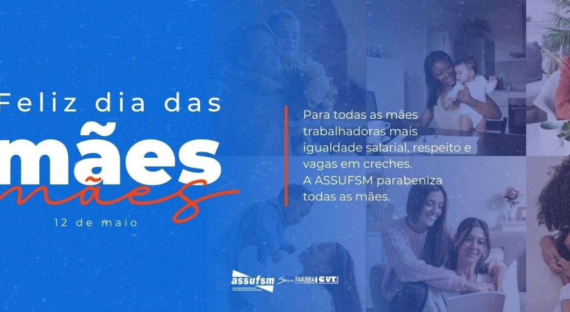 Neste Dia das Mães, a Assufsm parabeniza a todas as mães, símbolos de doação e resistência. Que sejam sempre valorizadas pelo trabalho invisível que desempenham no cuidado do lar e na criação e formação dos(as) filhos(as). Para todas as mães trabalhadoras mais igualdade salarial, respeito e vagas em creches!