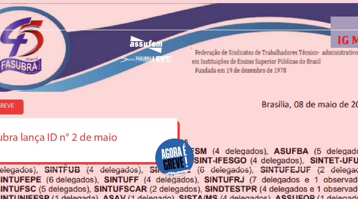 A Fasubra lançou, no dia 08 de maio, o segundo informe de greve do mês. No documento consta o mapa da greve a nível nacional, informes de base e o calendário com todas as atividades propostas para o mês de maio.