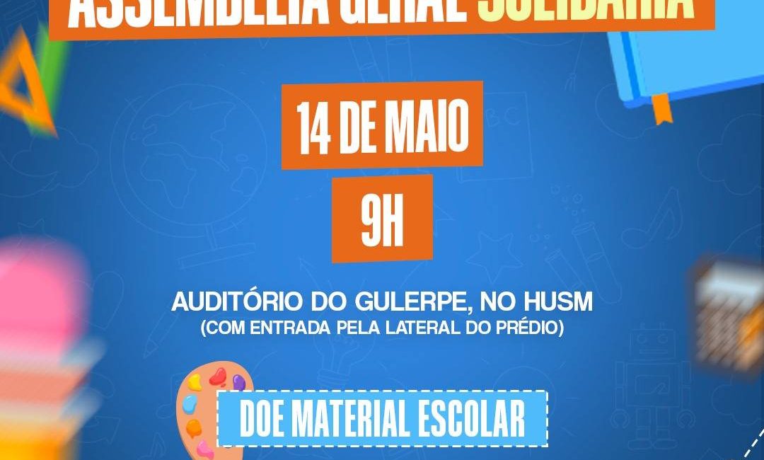 Além disso, a reunião reforçou a importância de seguir com as atividades grevistas e pontuou que é possível realizar atividades solidárias concomitantes. Além disso, se encaminhou que a Assembleia de Greve dessa terça-feira (14) será solidária com a doação de materiais escolares para as crianças e adolescentes que perderam tudo com as enchentes em Santa Maria e região. A Assembleia acontecerá às 9h, no Auditório do Gulerpe, no HUSM, com entrada pela lateral do prédio.