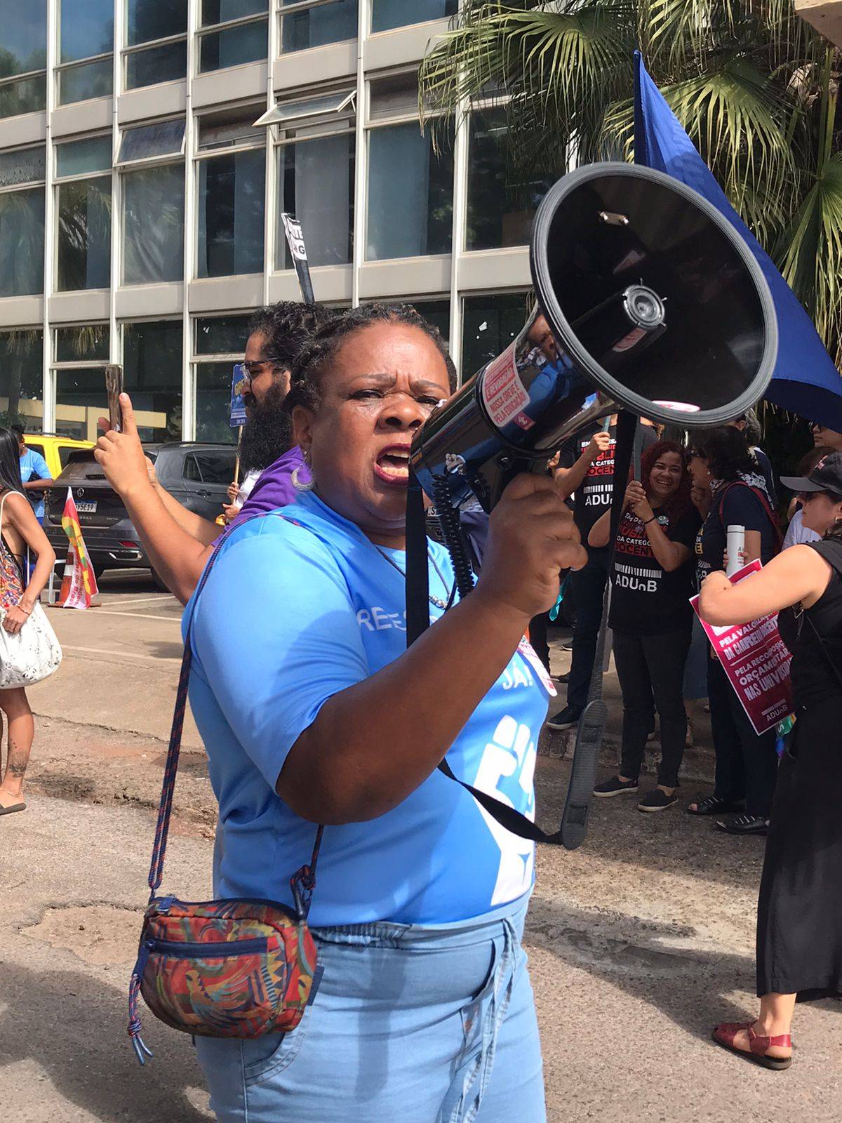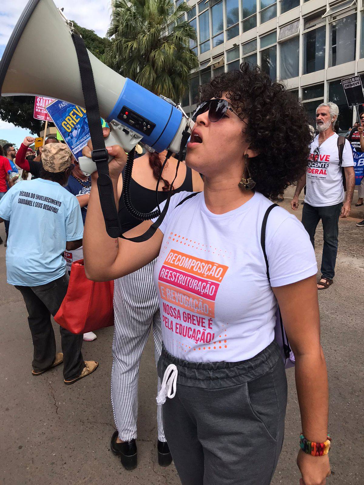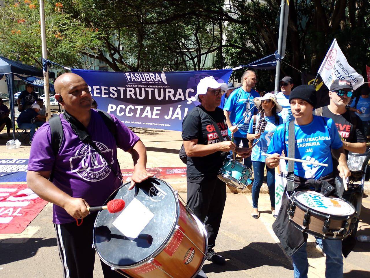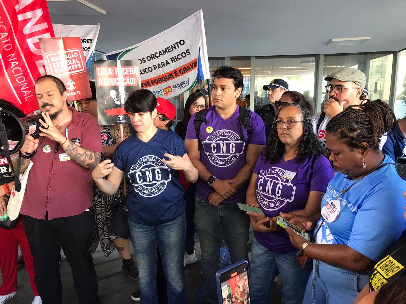 Do lado de fora do prédio, as categorias se mobilizavam em um Ato Unificado pela Educação. Representando a Assufsm no Comando Nacional de Greve atualmente estão: pela chapa Vamos à Luta Maurício Severo e Cezar Augusto Machado, e pela chapa REUNIR Jorge Trindade (Jorjão) e Roberto Bordin.