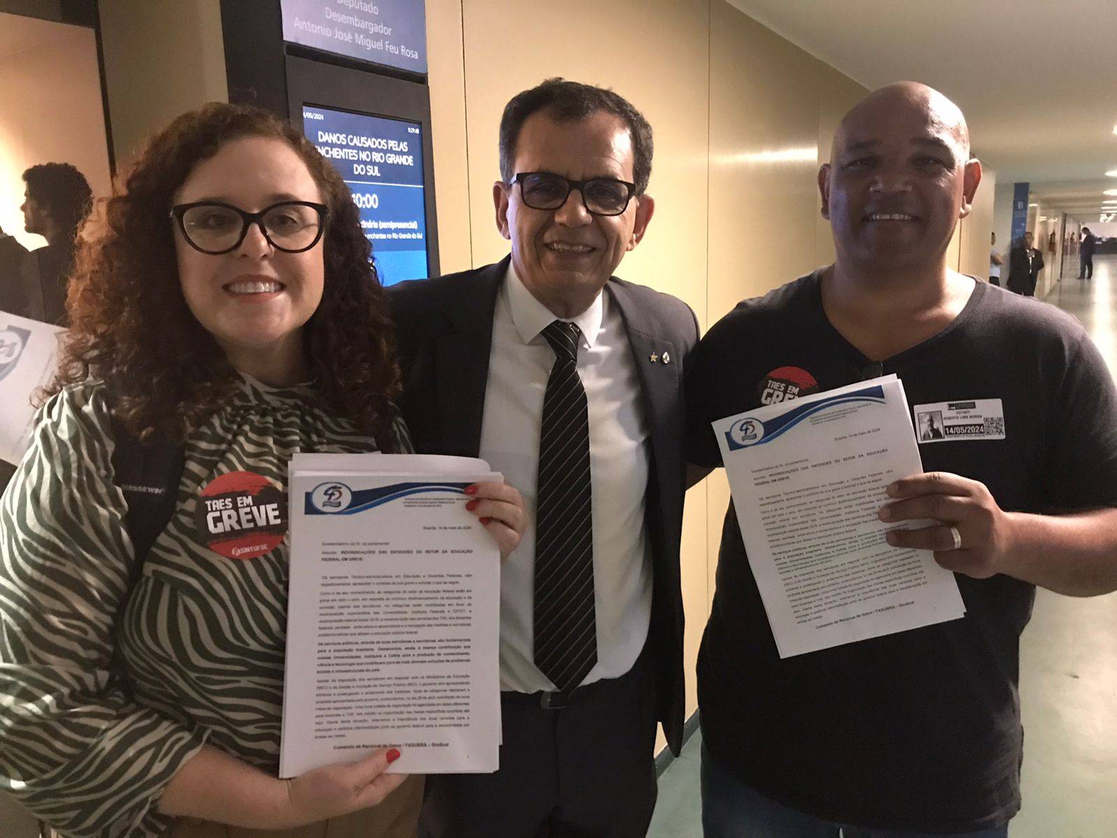 Na oportunidade, o(a)s integrantes dos CNGs dialogaram com o(a)s parlamentares, apresentando uma carta para conhecimentos de todas e todos sobre as pautas de reinvindicação da greve.