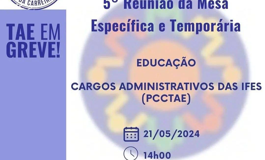 Hoje (21), às 14h acontece no Ministério da Gestão e Inovação a 5° reunião da Mesa Específica e Temporária. Em Brasília, a caravana da Assufsm já está mobilizada e fará vigília em frente ao Ministério. Em Santa Maria, os(as) TAEs do Comando Local de Greve farão vigília nesta tarde de terça-feira, no hall da Reitoria, para acompanhar a reunião.