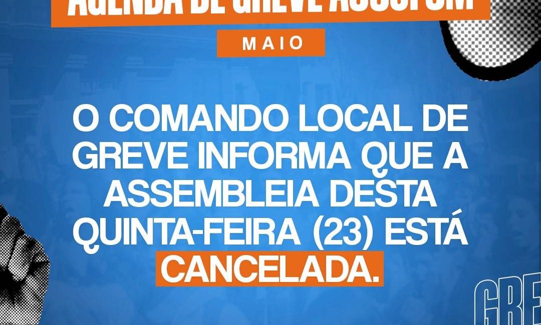 ⚠ Por conta da forte chuva em Santa Maria, a Assembleia que estava marcada para acontecer na tarde desta quinta-feira (23) foi cancelada.