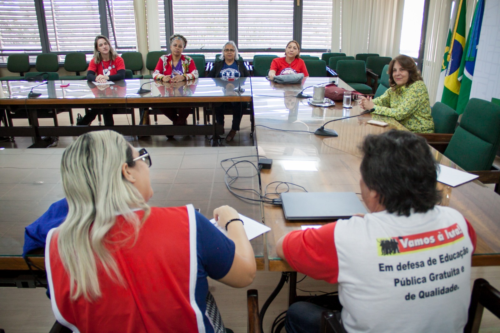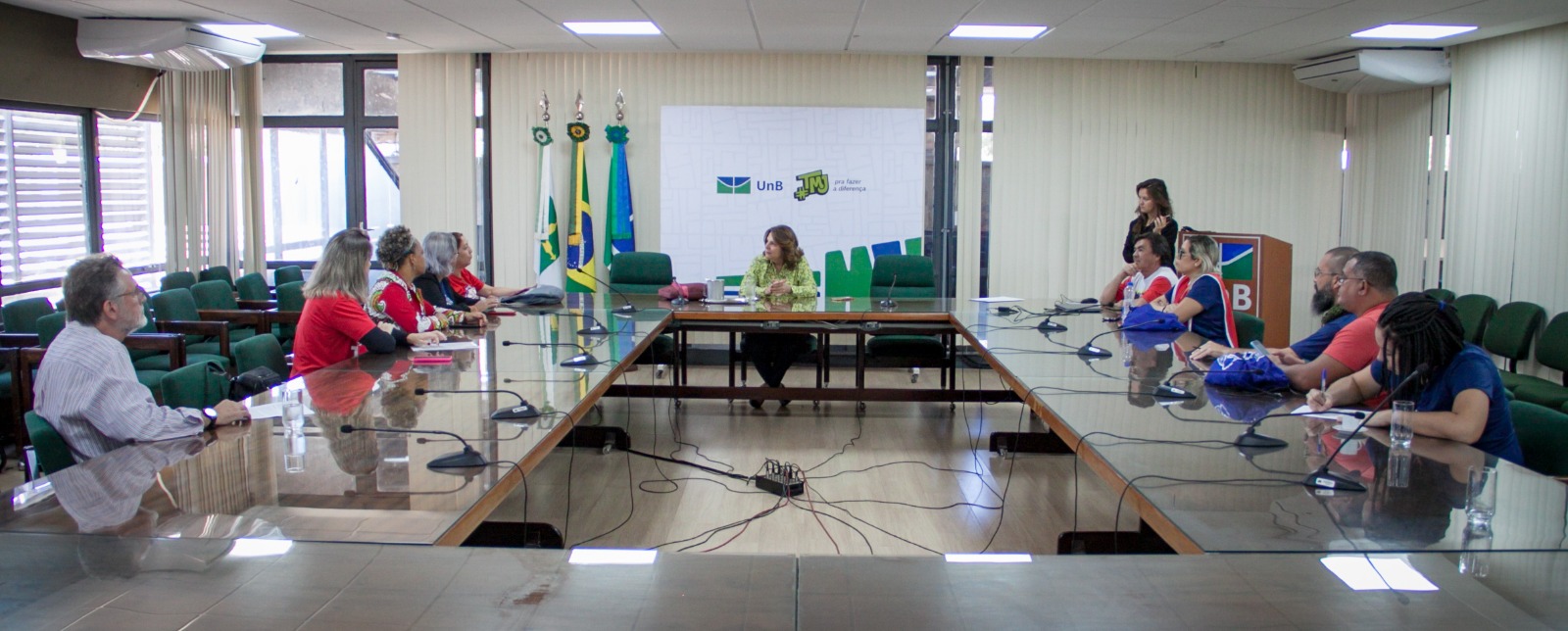Na manhã de terça-feira, (04/06), o Comando nacional de Greve da FASUBRA esteve reunido com a Reitora da UnB, professora Márcia Abrahão Moura, presidenta da Associação Nacional dos Dirigentes das Instituições Federais de Ensino Superior (ANDIFES). A reunião foi agendada a partir da informação de um encontro entre Reitores e o presidente Lula, que ocorreria na próxima quinta-feira, 6 de junho, posteriormente transferido para segunda-feira, 10 de junho. A reunião de hoje teve como objetivo buscar apoio da Presidenta da ANDIFES em relação à greve dos Técnico-Administrativos da Educação, que irá completar 3 meses na próxima semana. A presidenta da ANDIFES se comprometeu a apresentar as propostas do CNG da FASUBRA, para viabilizar a continuidade da negociação com o governo, ao presidente Lula.