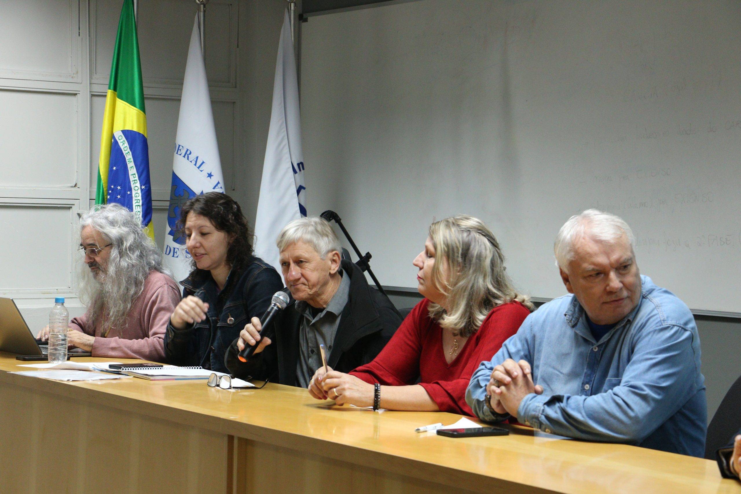 Na mesa estiveram a coordenadora geral Natália San Martin, o coordenador de Secretaria André Comim, os coordenadores financeiros da gestão passada Elton Rogério de Quadros, Eleutério Jost e Rosimar Rubenich – que agradeceram a oportunidade e reforçaram o compromisso do sindicato na transparência para com os(as) filiados(as). Além deles, estiveram presentes na mesa os representantes da ESCO – Inteligência Contábil Simone Girardon e Robson Machado que apresentaram um relatório detalhado do patrimônio da Assufsm e os balanços financeiros dos anos de 2022 e 2023.