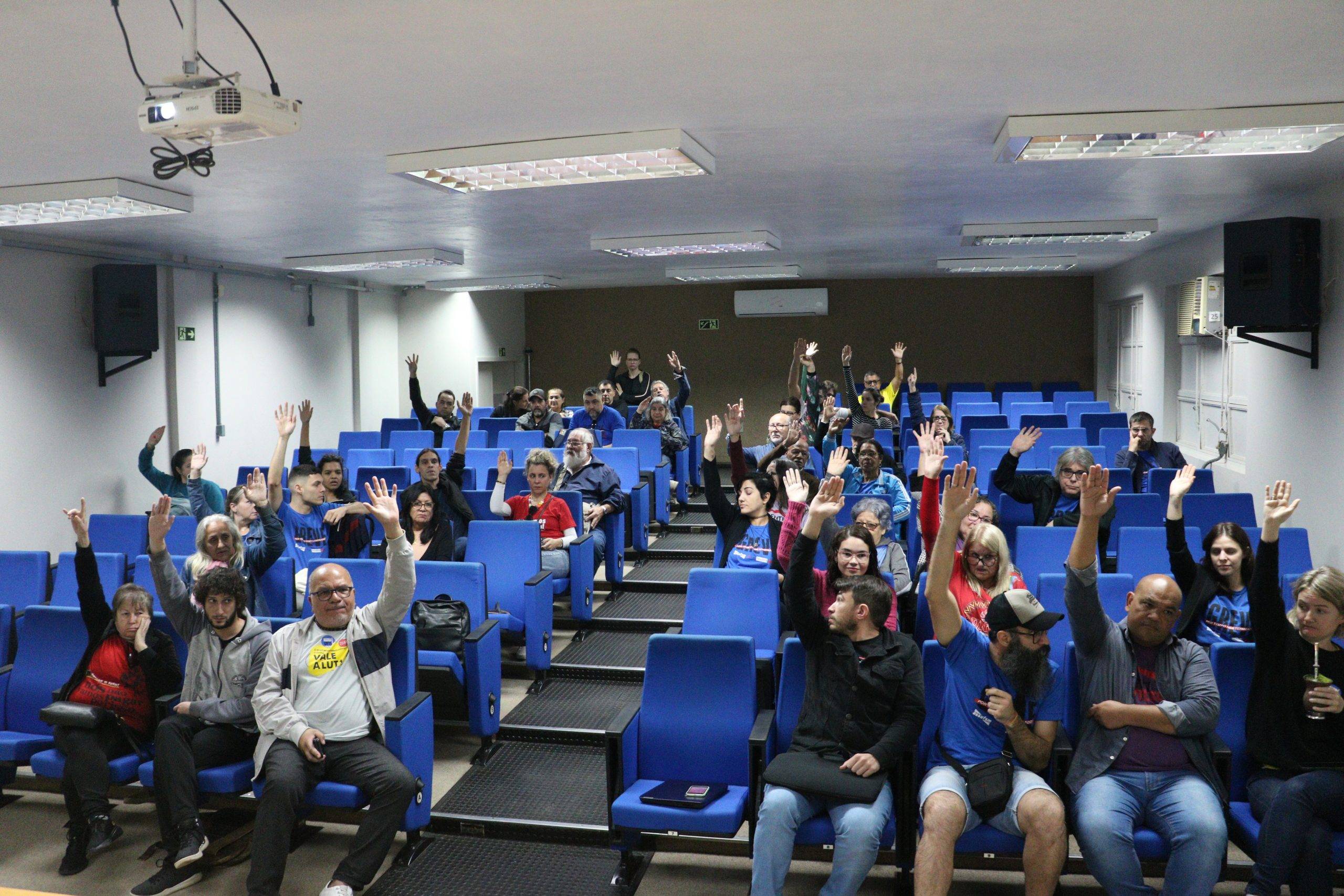 Por fim, o quórum presente votou, por maioria – com dois votos contra e quatro abstenções- a aprovação das contas do sindicato. Além disso, os(as) presentes também votaram por unanimidade a criação de uma comissão para elaboração do Conselho Fiscal, com três titulares e um suplente: Sandra Rocha, Jeferson Fener da Silva, Adriele Machado Rodrigues, Glaucia da Rocha Tassinari.