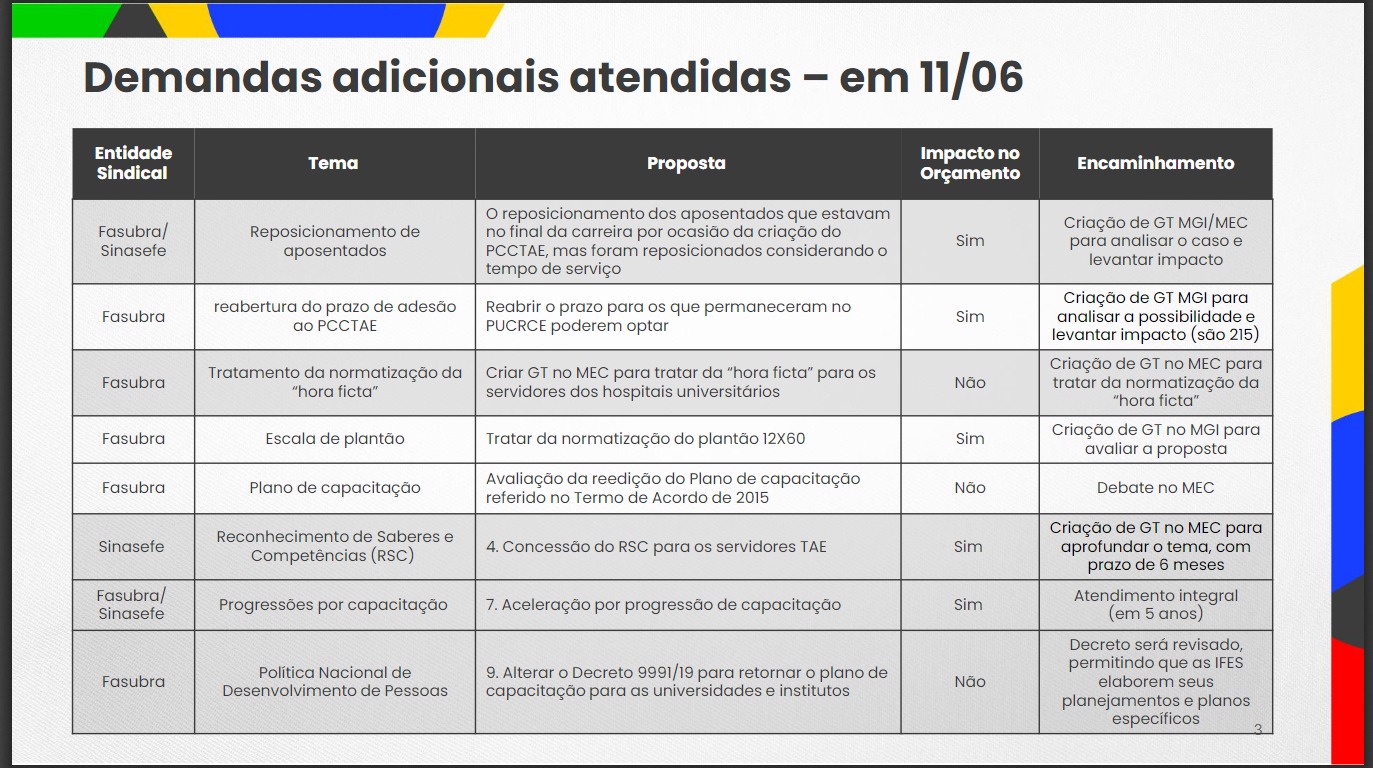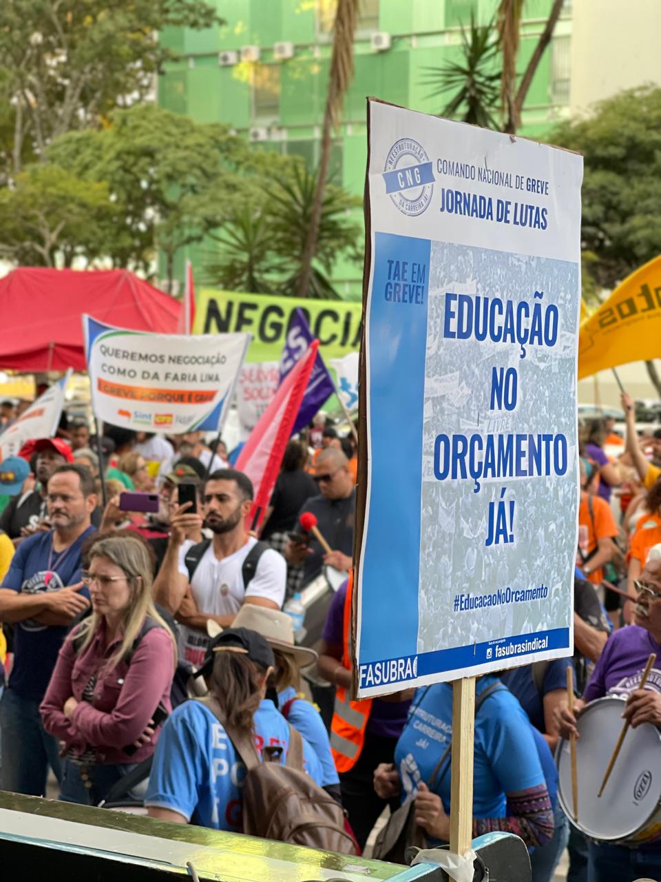 Os integrantes do CNG da FASUBRA organizaram um momento para lembrar ao governo os 3 meses de greve da Federação, que iniciou seu movimento grevista da educação federal no dia 11 de março. A greve teve a adesão do SINASEFE no dia 3 de abril e do ANDES-SN no dia 15 de abril.