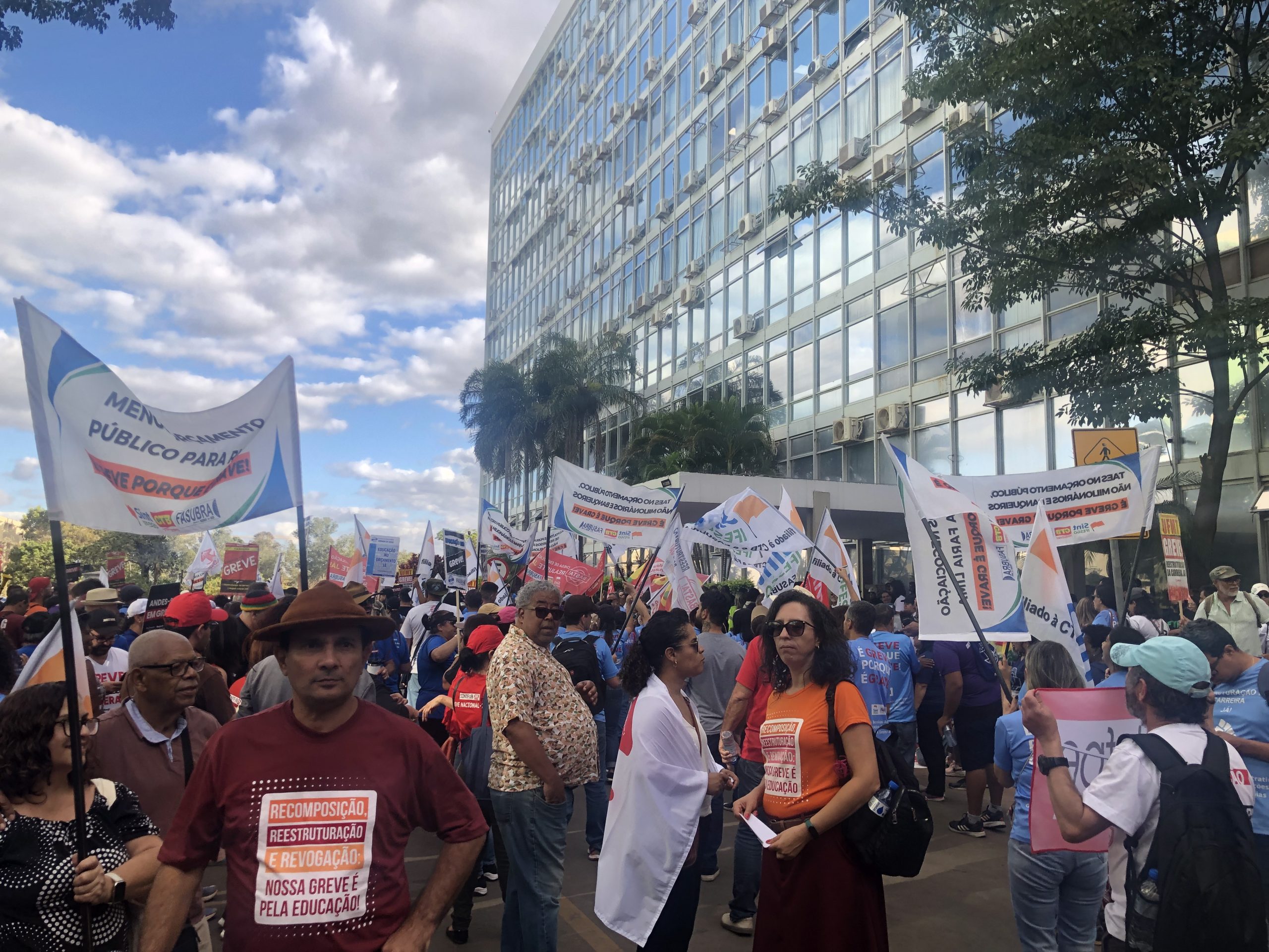Em Brasília, a reunião com o MGI, que começou às 16h, durou até às 21h, ocorrendo uma vigília dos trabalhadores e trabalhadoras da educação, em frente ao ministério.