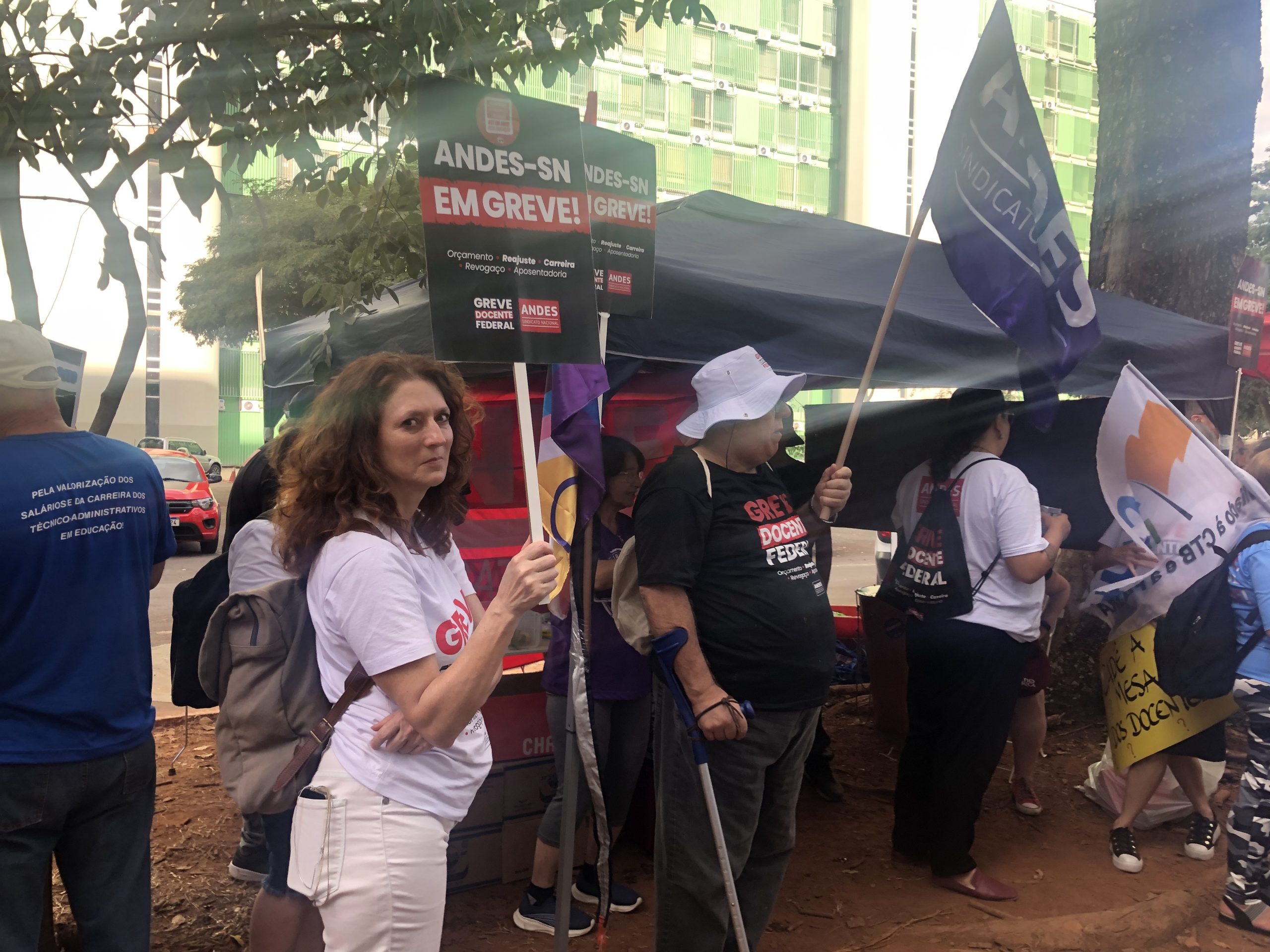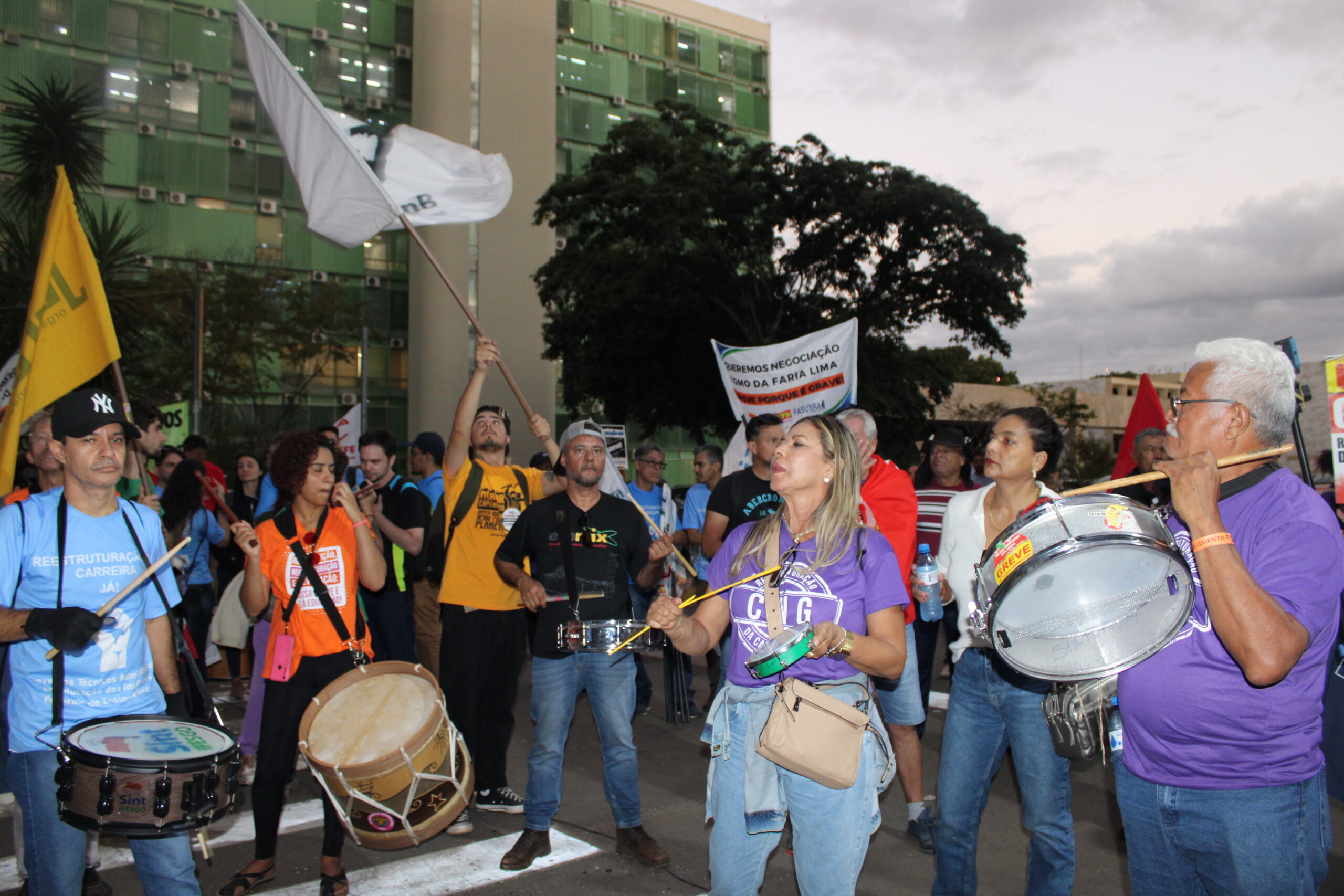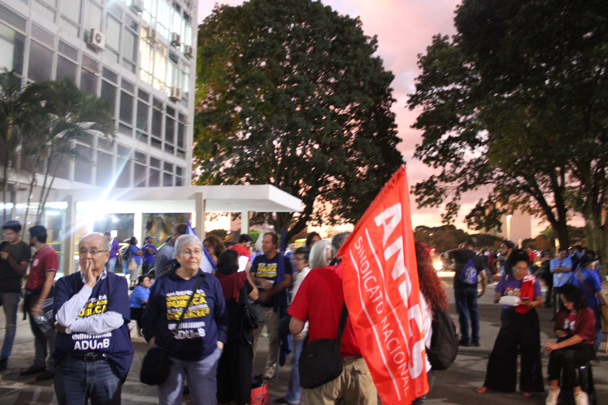 Durante a tarde e à noite da última de terça-feira, 11 de junho, ocorreu mais um ato unificado, da FASUBRA, do SINASEFE e do ANDES-SN, em frente ao Ministério da Gestão e Inovação em Serviços Públicos – MGI.