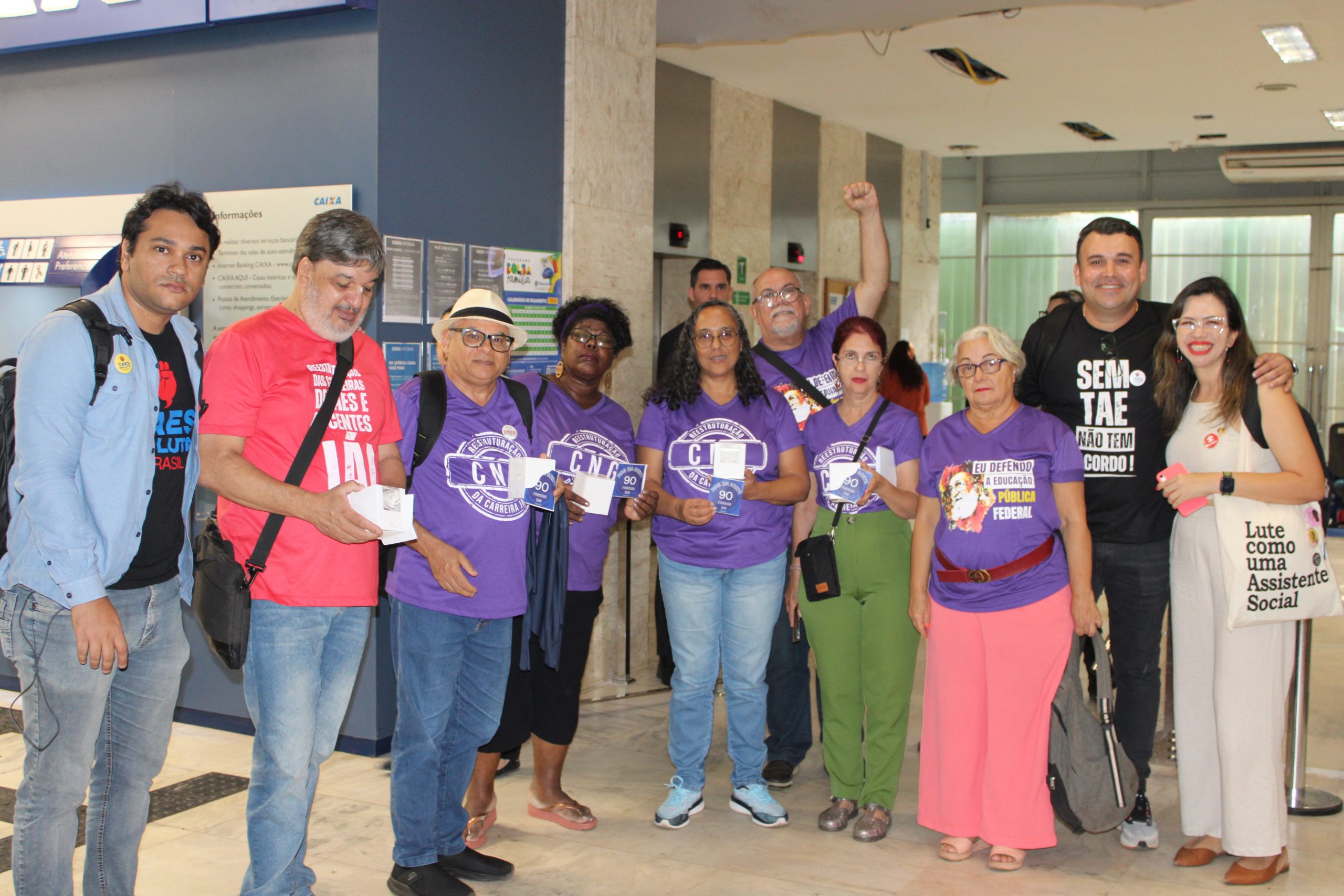 O Secretário das Relações do Trabalho do MGI, José Lopez Feijóo e demais representantes do governo, receberam, das mãos das coordenadoras da FASUBRA, cupcakes, com um lembrete sobre os 90 dias em greve.