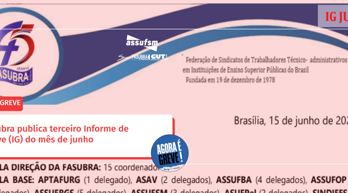 A Fasubra publicou no último sábado (15), o Informe de Greve n° 3 do mês de junho. No documento, consta a proposta do Governo apresentada na 6° Mesa Específica e Temporária, bem como a análise da Comissão Nacional de Supervisão da Carreira (CNSC).