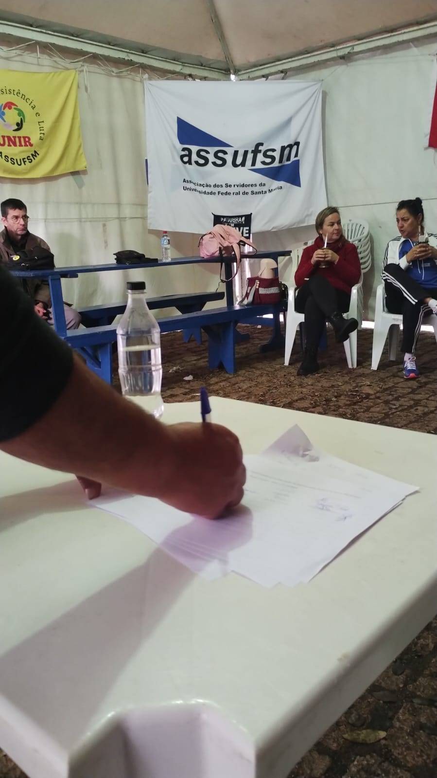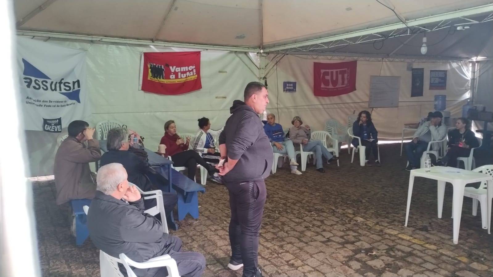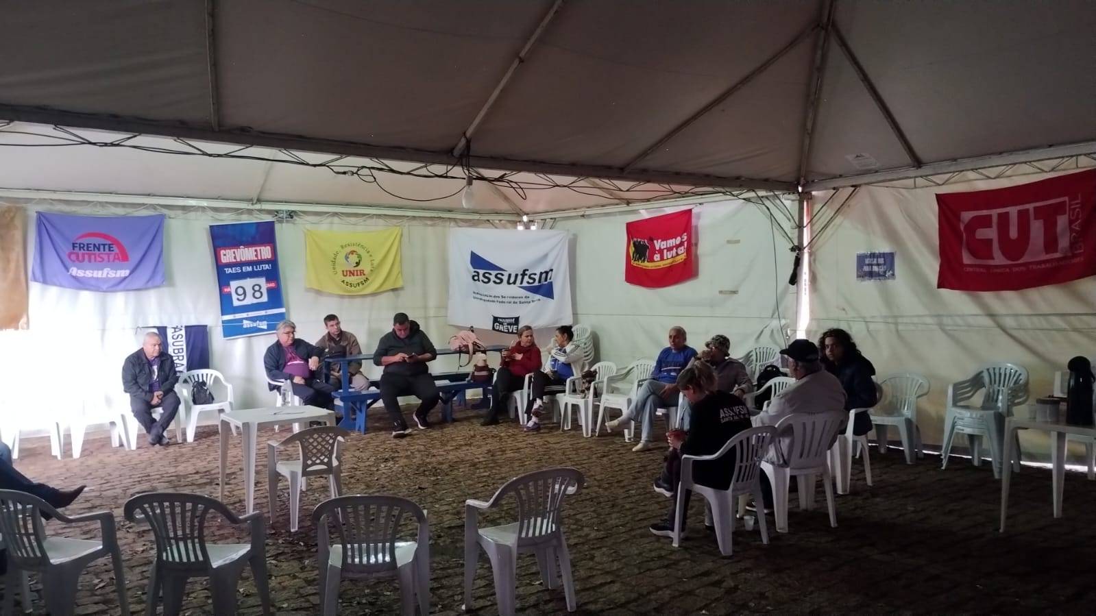 Após votação na Assembleia de ontem (18), a categoria segue mobilizada na UFSM. A dois dias de completar cem dias de greve, os(as) TAEs se reuniram no lonão nesta manhã de quarta-feira para encaminhar novas ações.