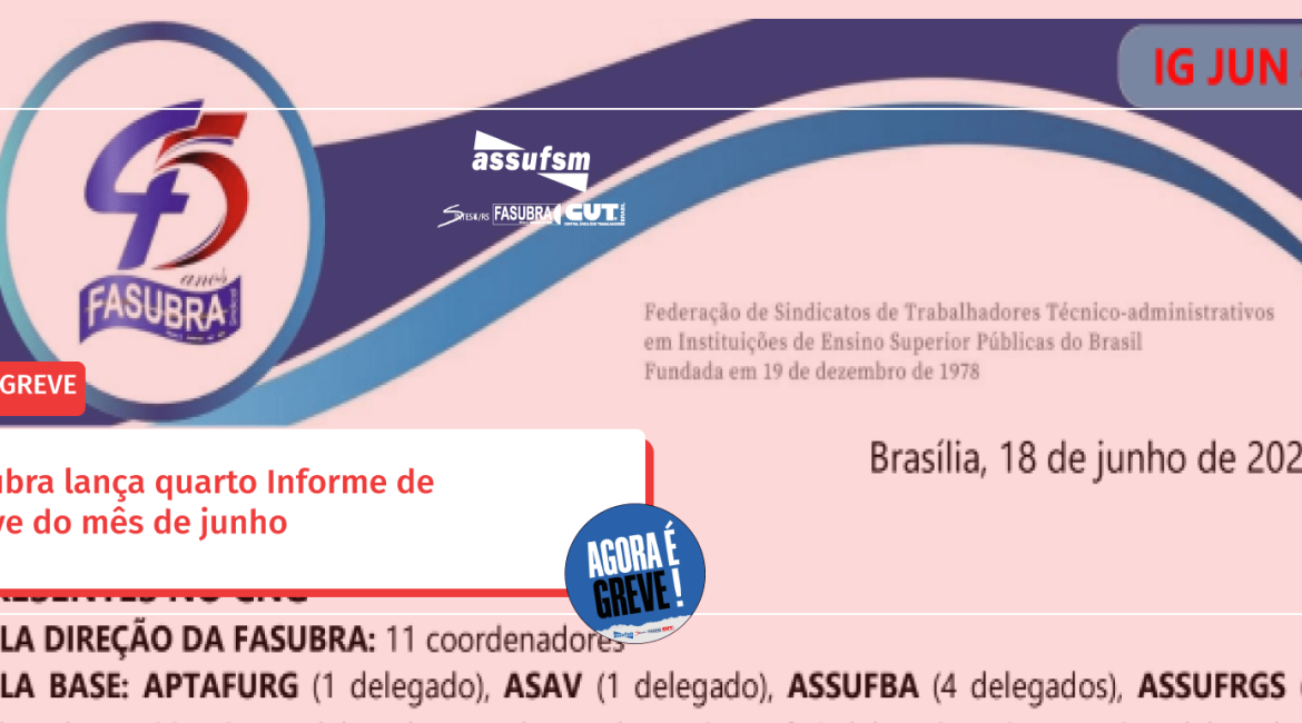 A Fasubra publicou o quarto Informe de Greve (IG) do mês de junho, na última terça-feira (18).