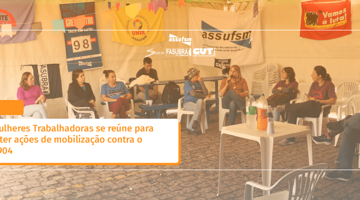 Na tarde de quarta-feira (19), o GT Mulheres Trabalhadoras da Assufsm esteve reunido no lonão de greve para debater um assunto que beira ao retrocesso aos direitos das mulheres: o PL 1.904, chamado de PL do aborto ou do Estuprador.