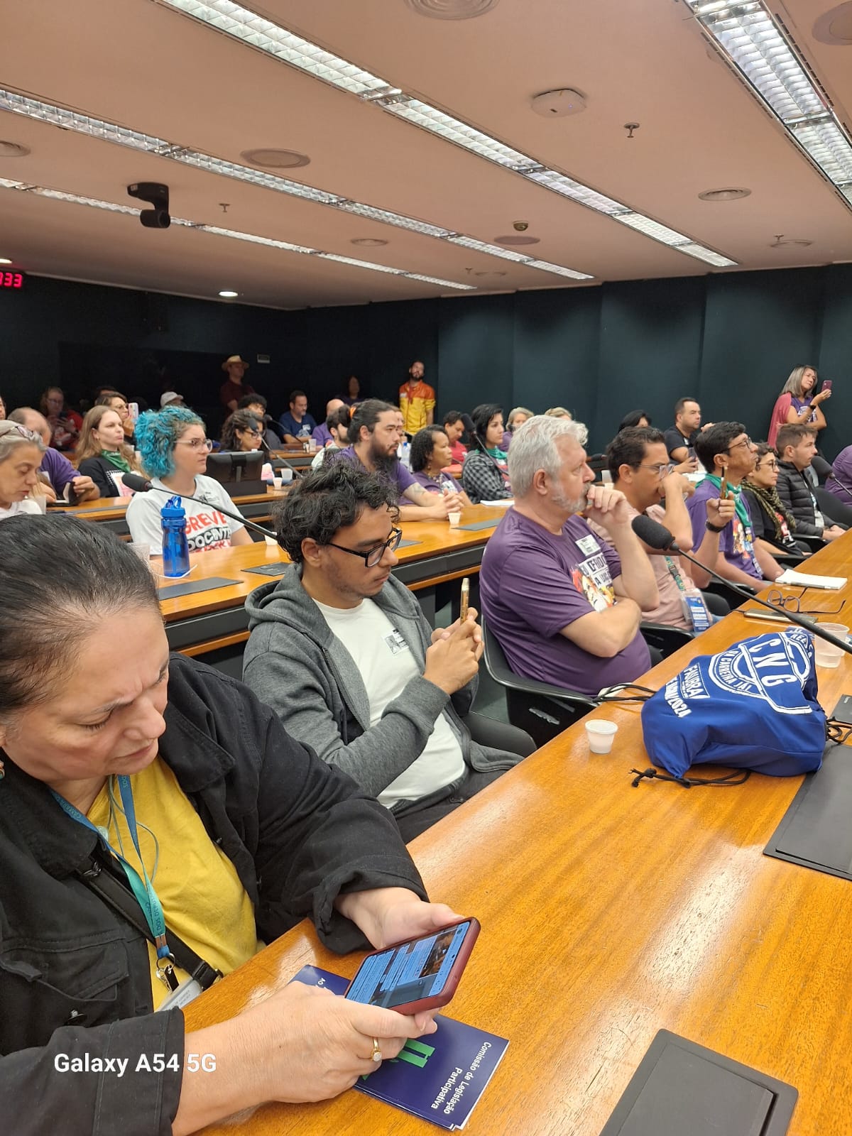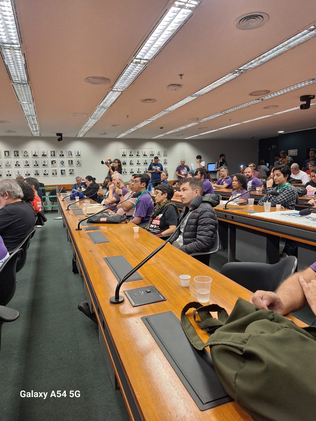 Nesta quarta-feira, (20/06), pela manhã, o Comando Nacional de Greve da FASUBRA participou de mais uma audiência pública na Câmara dos Deputados. A audiência de hoje foi na Comissão de Legislação Participativa, tendo como tema “Greve da educação pública federal”. Além da FASUBRA, representada pela Coordenadora Geral, Ivanilda Reis, houve também a participação de David Lobão, Coordenador Geral do SINASEFE, Gustavo Seferian, Presidente do ANDES-SN, Mário dos Santos Barbosa, Diretor do Departamento de Relações de Trabalho no Serviço Público do Ministério Gestão e Inovação e Fernando Antônio dos Santos Matos, Coordenador-Geral de Articulação Institucional do Ministério da Educação. O requerimento da audiência pública foi uma iniciativa do Deputado Federal Glauber Braga (PSOL/RJ). A audiência também contou com a participação do deputado Pedro Uczai (PT-SC).