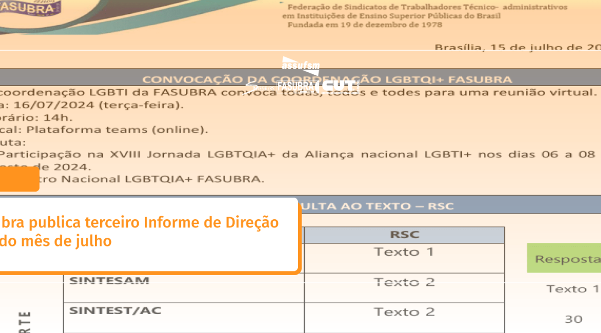 Fasubra publica terceiro Informe de Direção (ID) do mês de julho