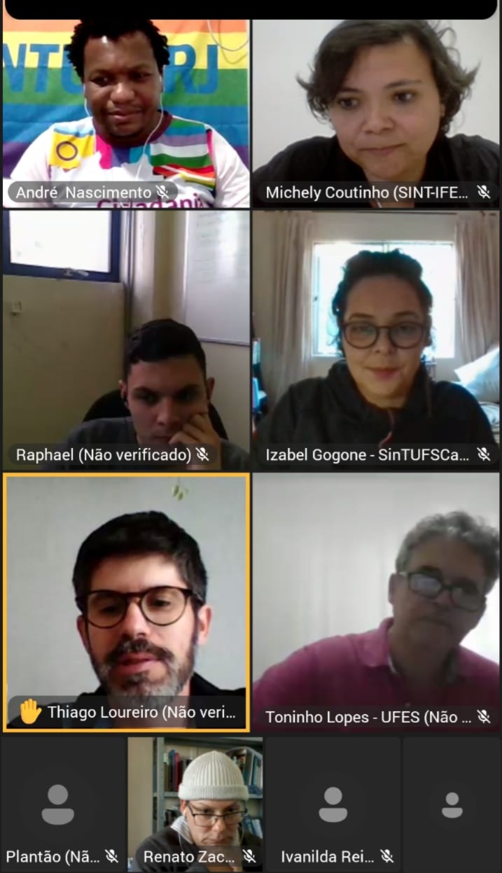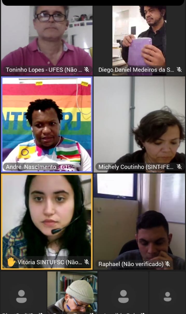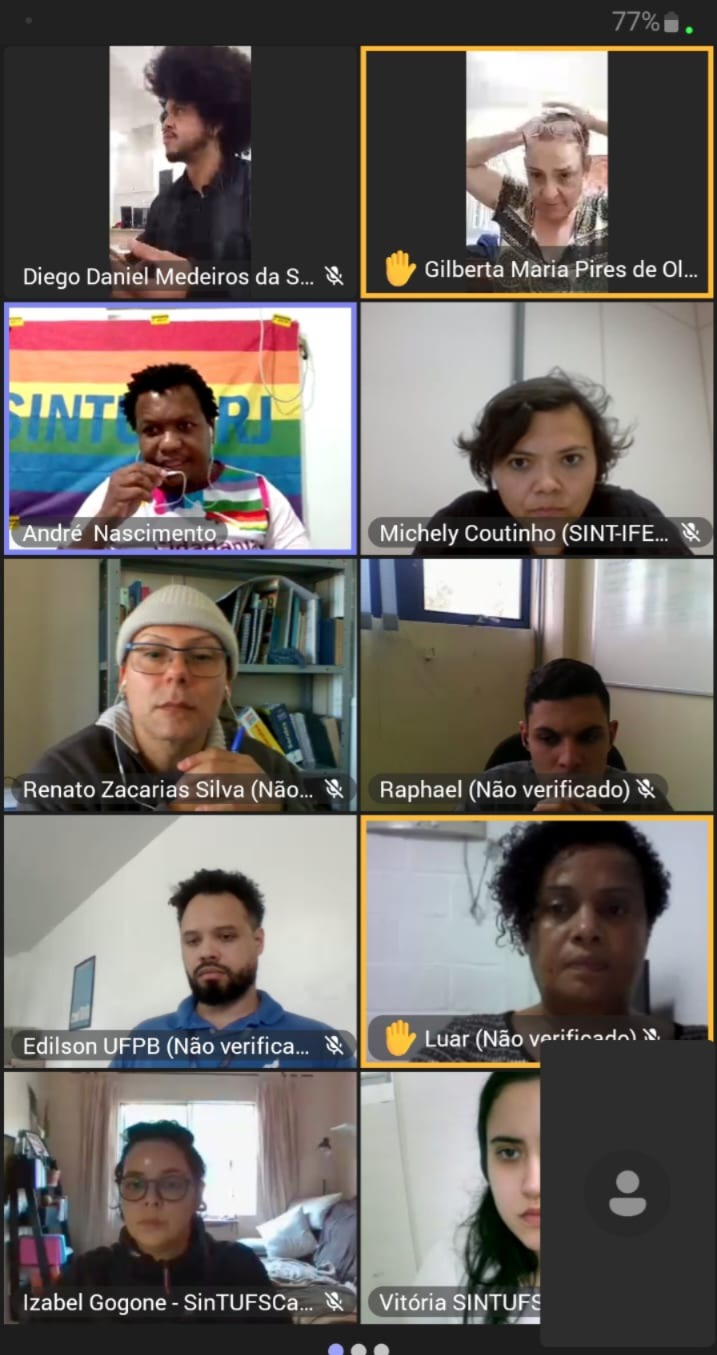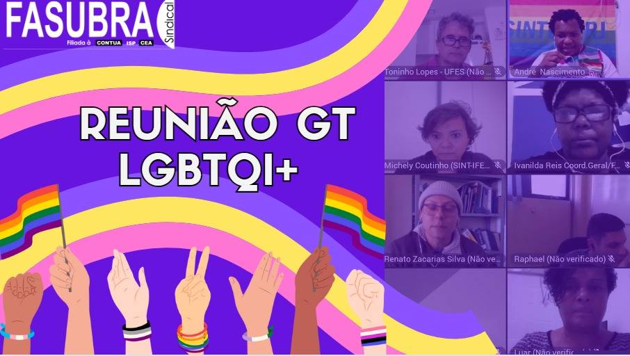 Na última terça-feira, 16 de julho, aconteceu a reunião online do Grupo de Trabalho Nacional LGBTQIA+, promovida pela Coordenação de LGBTI+ da FASUBRA Sindical, Luar Santana de Paula e André Nascimento dos Santos. A reunião marcou a retomada das atividades da coordenação, após o período de greve. Foram repassados os informes das ações desenvolvidas pelo CNG bem como o planejamento das próximas atividades da coordenação. Em pauta, estava a discussão sobre a XVIII Jornada LGBTQIA+ da Aliança Nacional LGBTI+ e o Encontro Nacional LGBTQIA+ FASUBRA. A coordenação encaminha as seguintes orientações para as entidades de base: