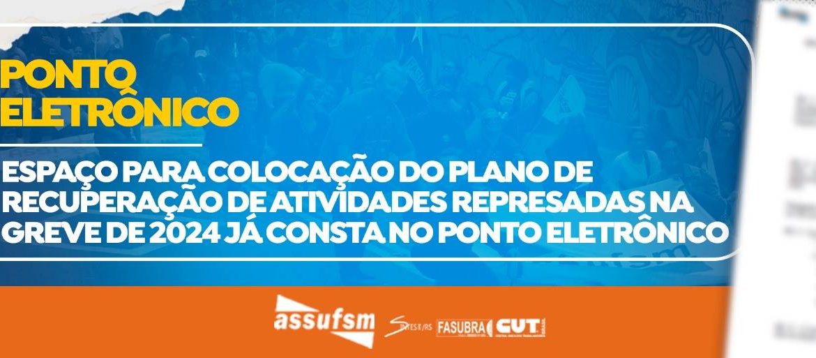 Atenção Técnico Administrativo e Administrativa em Educação da UFSM, o espaço para a colocação do Plano de Recuperação de Atividades Represadas na Greve de 2024 já consta no ponto eletrônico.