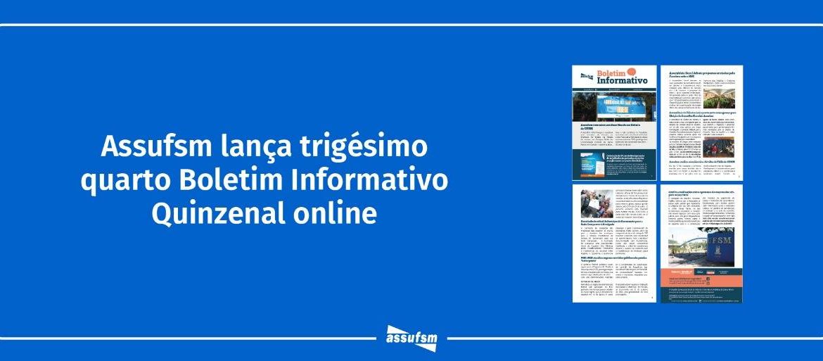 A Coordenação da Assufsm, gestão 2023-2025, em parceria com o Setor de Comunicação do Sindicato, lança a Edição de número 34 do Boletim Informativo Online.