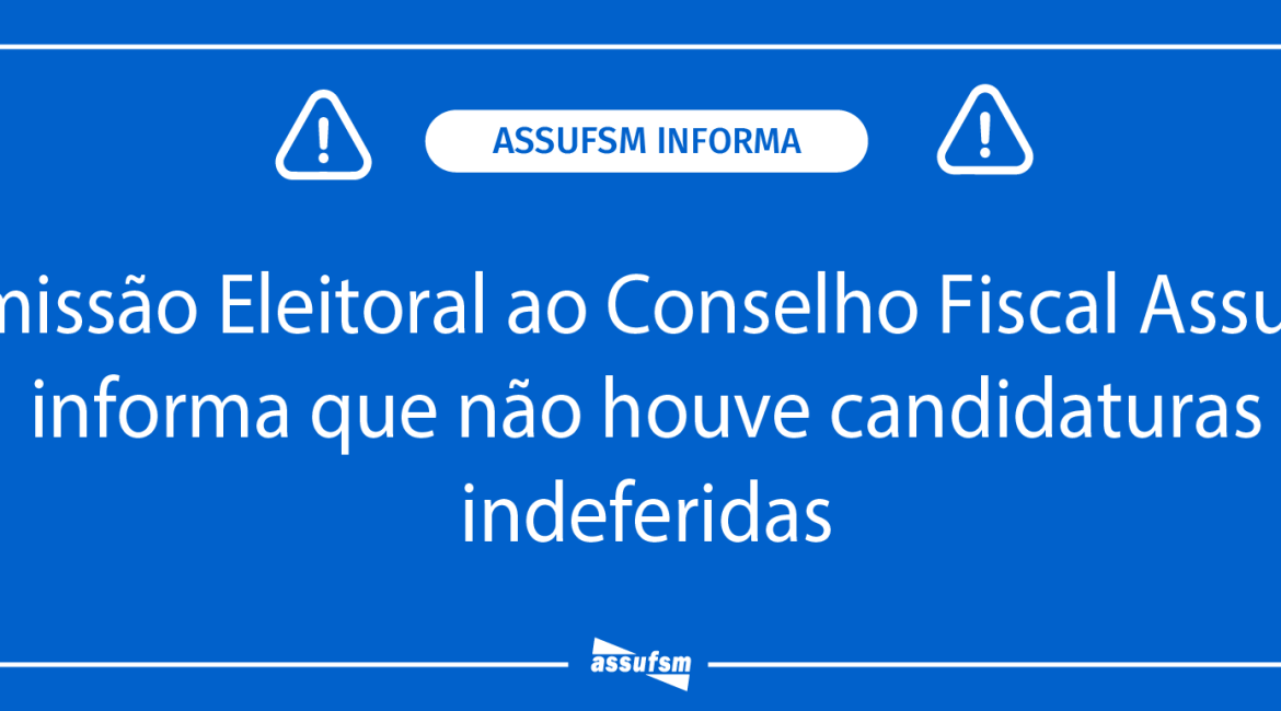 No dia 30 de julho, encerraram as inscrições para concorrer às eleições do Conselho Fiscal da Assufsm. A Comissão Eleitoral informa que não houve candidaturas indeferidas e, conforme edital irá divulgar a lista de candidaturas homologadas na quinta (01/08), às 12h.