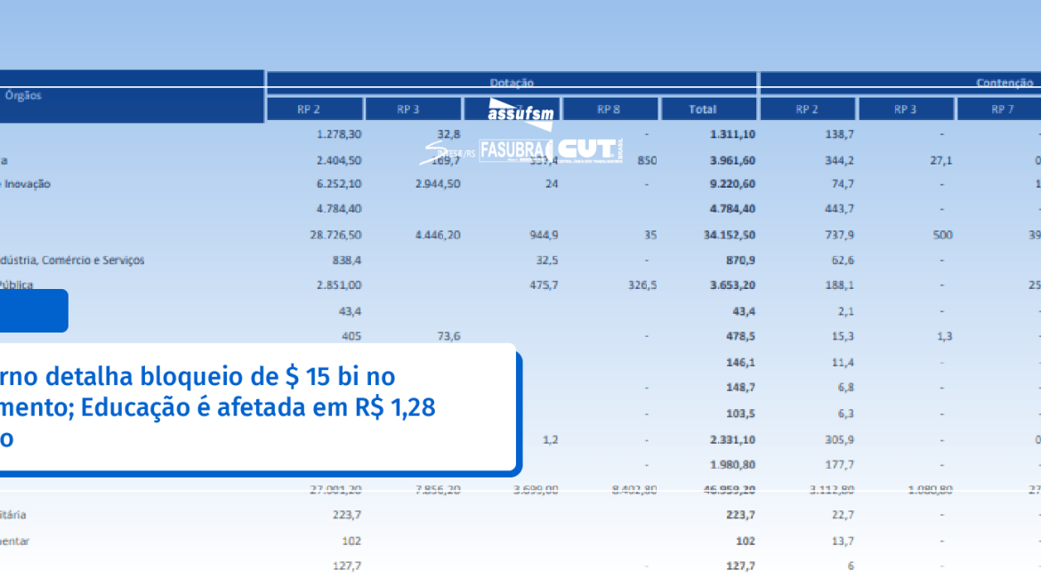 Governo detalha bloqueio de $ 15 bi no Orçamento; Educação é afetada em R$ 1,28 bilhão