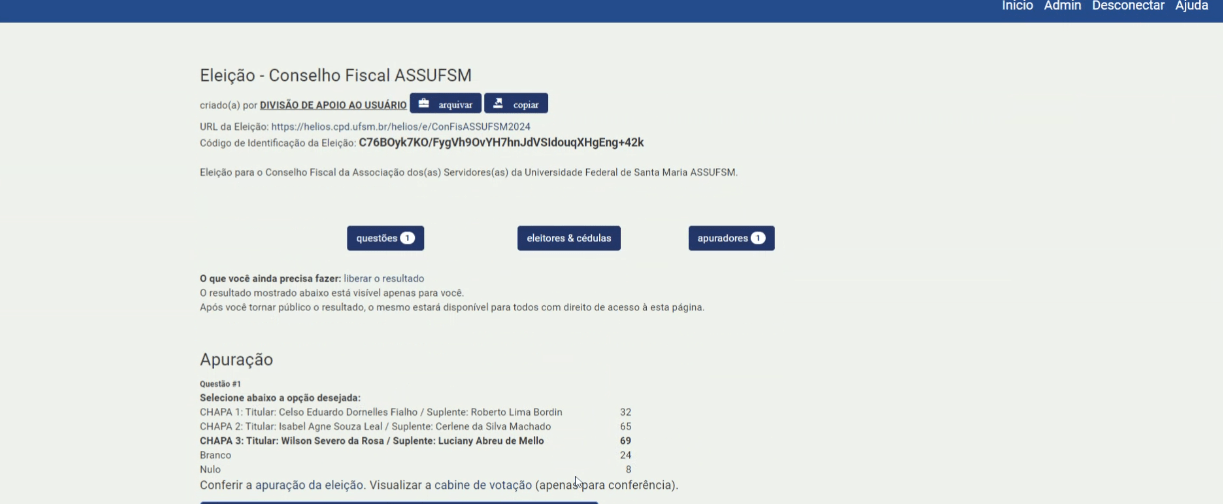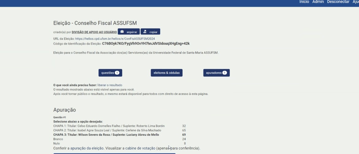 Nos dias 14 e 15 de agosto foram realizadas as votações para eleger as chapas responsáveis pelo Conselho Fiscal da Assufsm. Nos dois dias, a votação transcorreu de maneira tranquila, possibilitando aposentados(as), pensionistas e ativos(as) a elegerem o Conselho Fiscal da Assufsm com 198 votos (além de 25 brancos e 9 nulos). As três chapas foram eleitas.