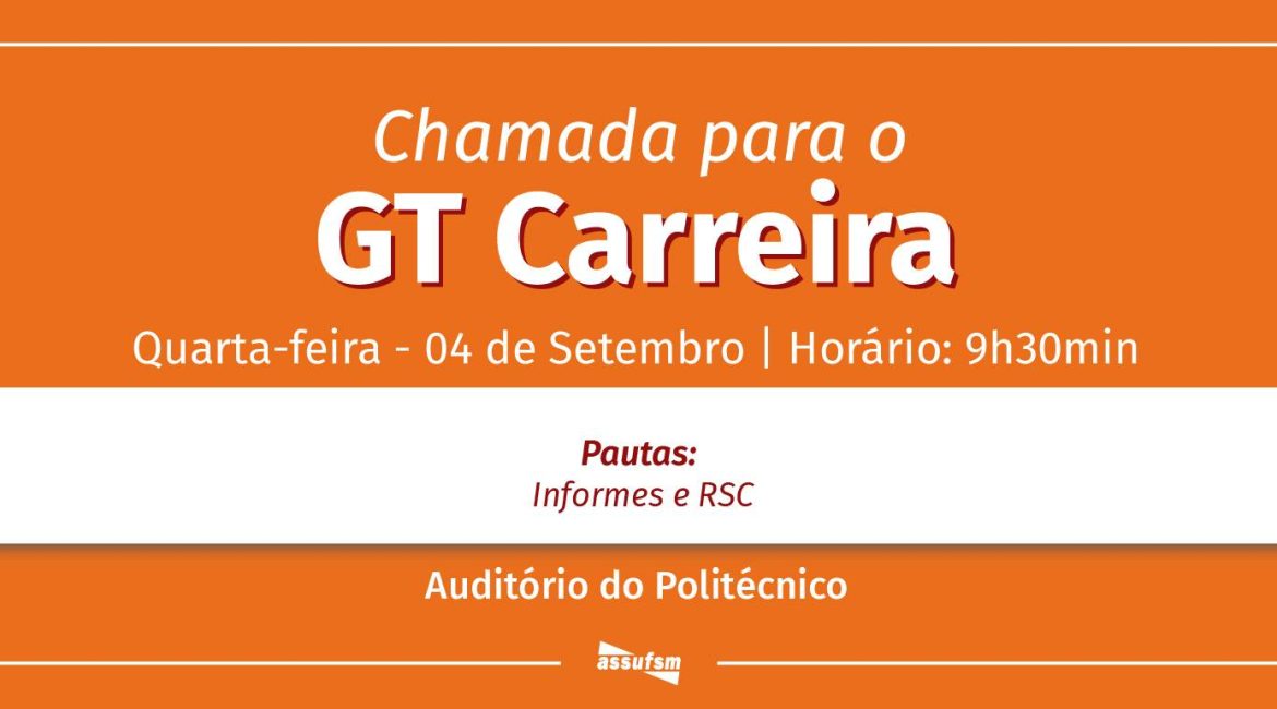 GT Carreira tem reunião nesta quarta-feira, 4 de setembro