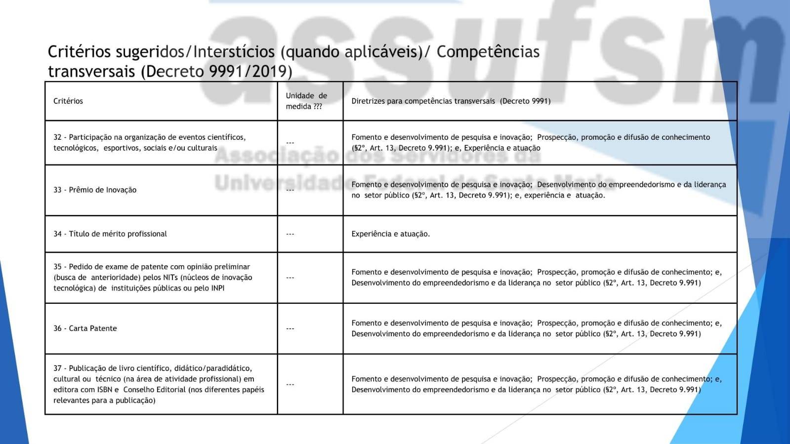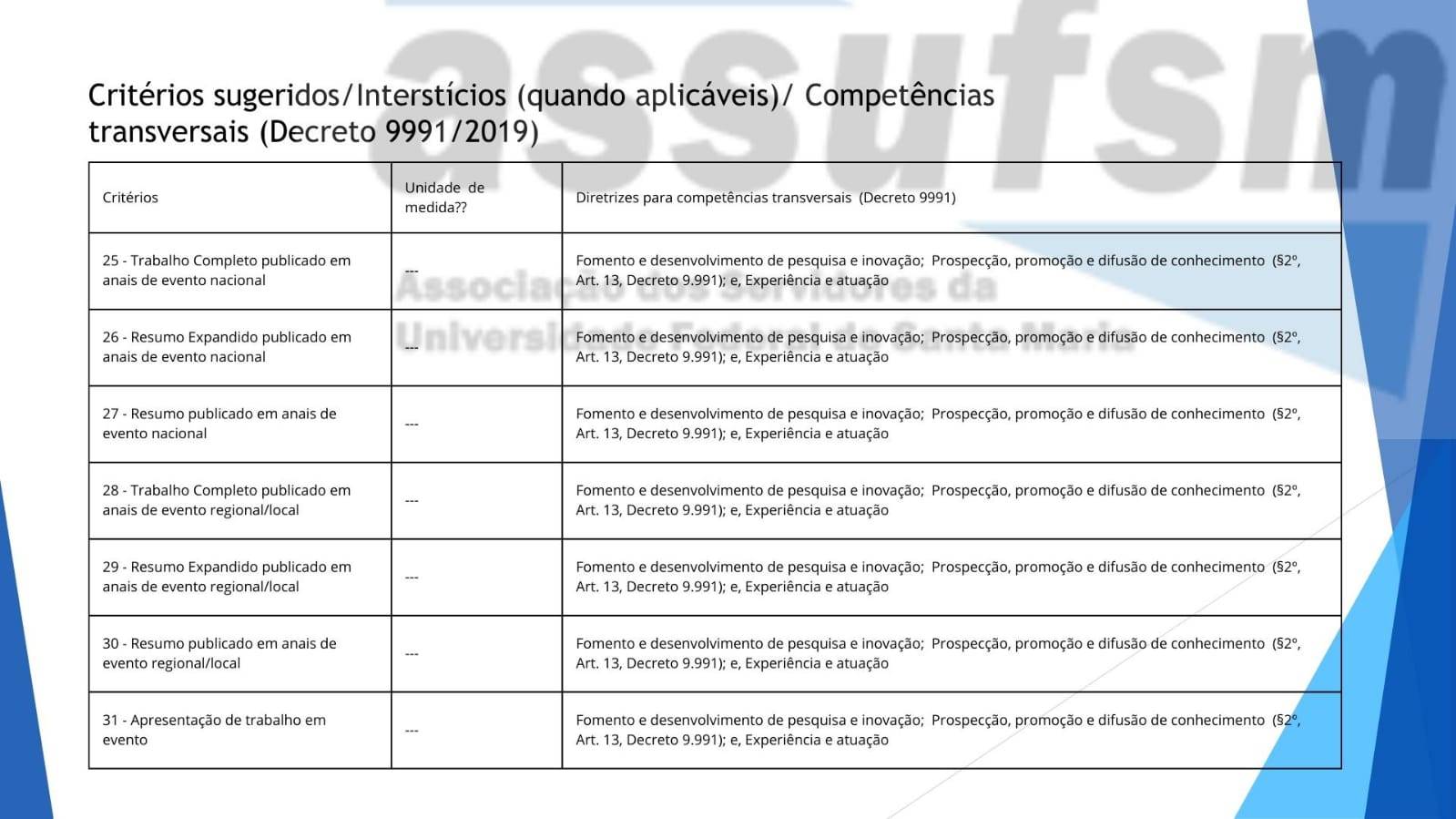 Tabelas construídas pelo GT Carreira e Coordenação da Assufsm