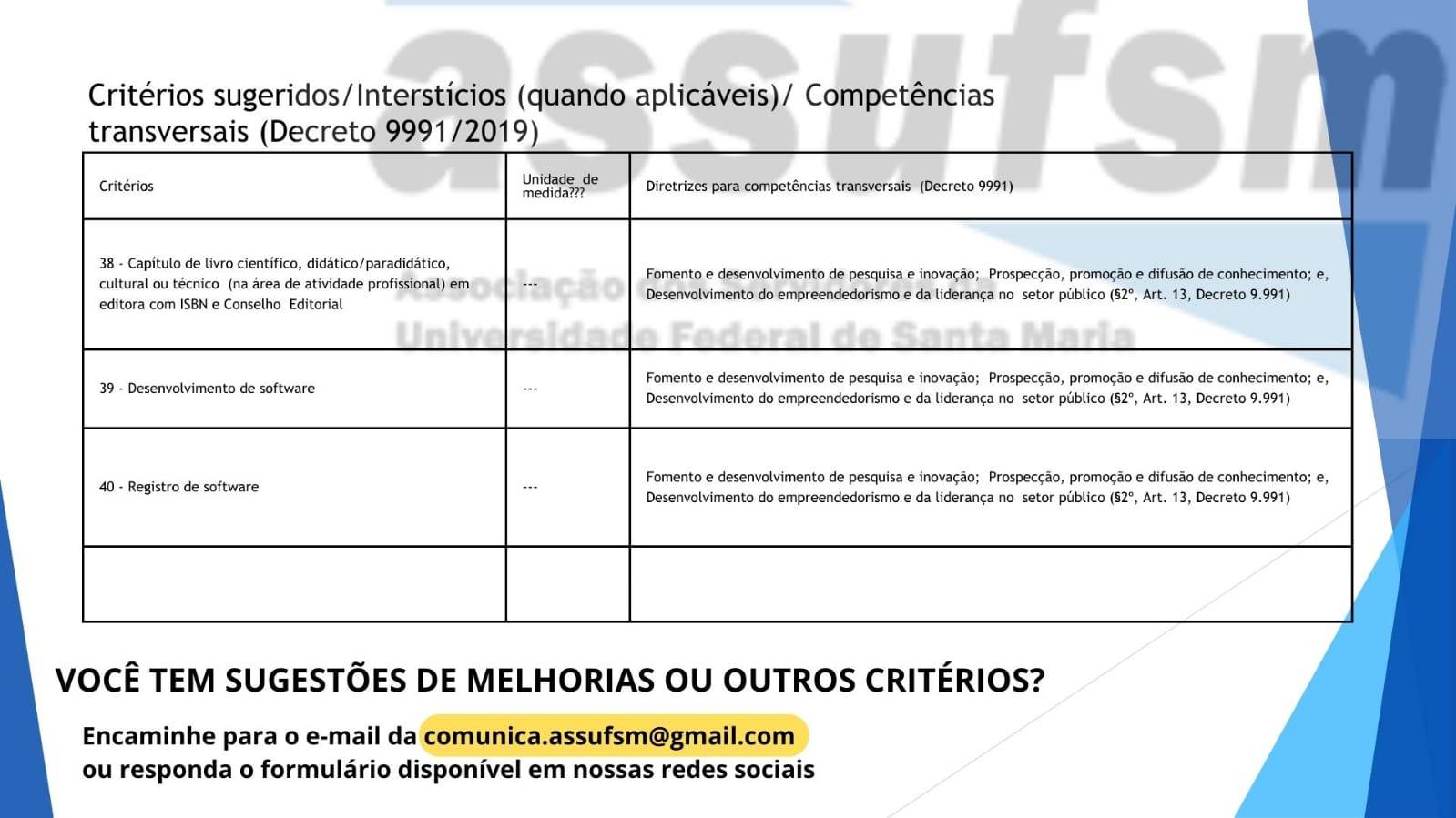 TAE, confira explicações sobre os critérios IQ por meio do RSC e participe do formulário da Assufsm