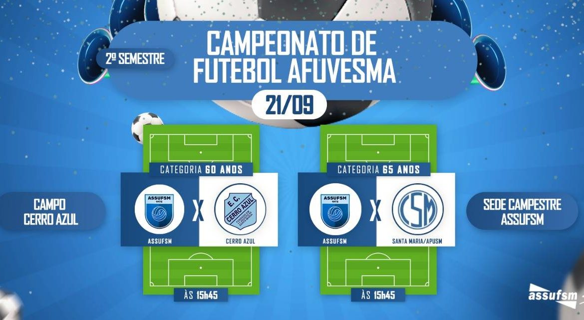 Confira os Jogos da ASSUFSM, na 2° rodada, a realizar-se dia 21 de setembro, sábado: