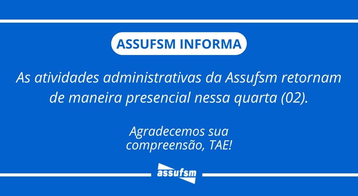 As atividades administrativas da Assufsm retornam de maneira presencial nessa quarta (02)
