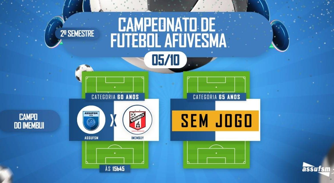No próximo sábado, dia 05 de outubro, tem mais uma rodada do campeonato da AFUVESMA, para o segundo semestre de 2024, com a quarta rodada para a categoria dos 60 anos. Confira o jogo: