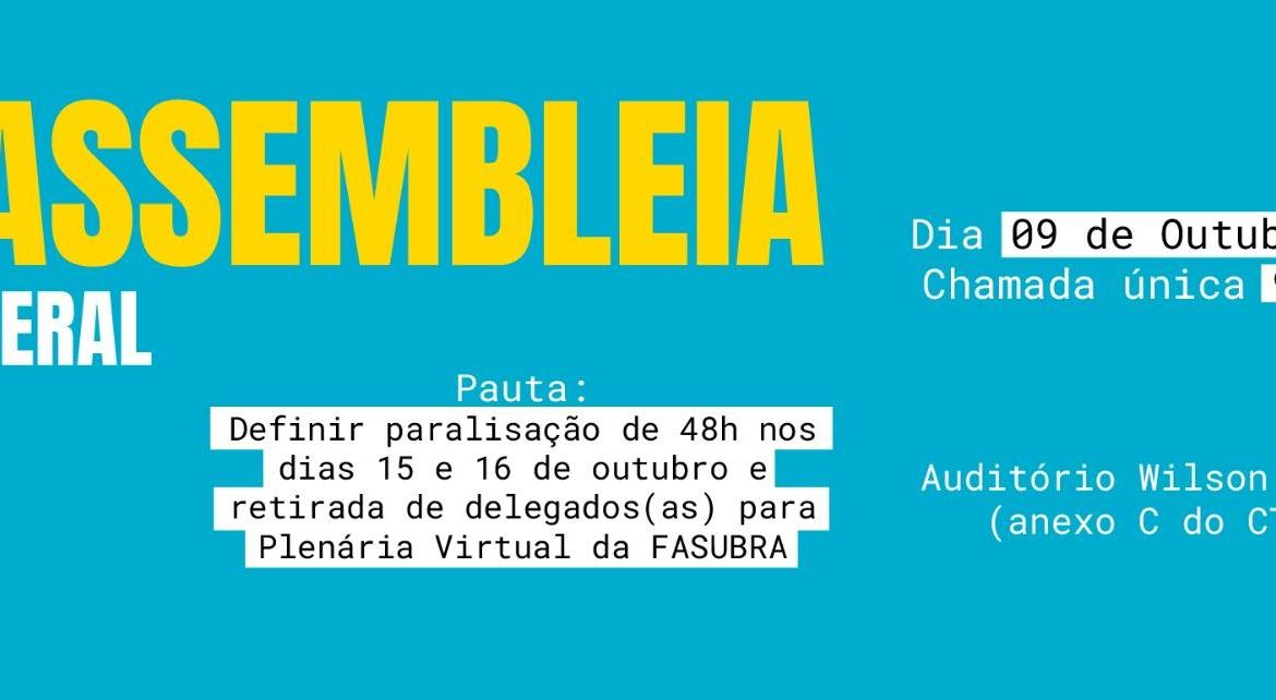 Em pauta estão: Definir paralisação de 48h nos dias 15 e 16 de outubro e retirada de delegados(as) para Plenária Virtual da FASUBRA.