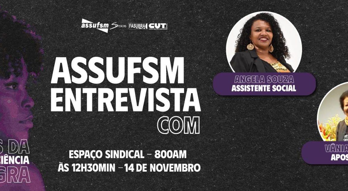 A segunda rodada de entrevistas especiais do Novembro Negro da Assufsm já está disponível no Spotify! Nessa edição, participaram do programa Espaço Sindical da Assufsm a TAE aposentada Vânia Paulon e a TAE Ângela Souza.