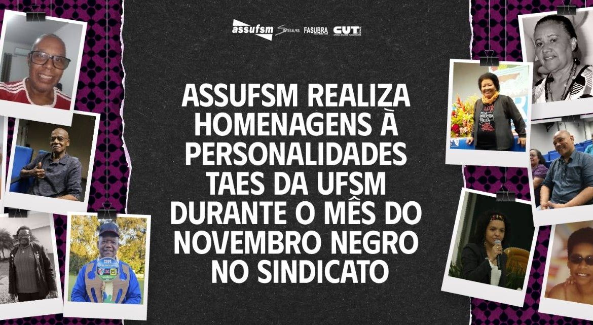 No mês de novembro a Assufsm realizou homenagens para algumas personalidades importantes que compõem o time de Técnico Administrativos e Administrativas em Educação da UFSM em alusão ao mês da consciência negra. Além disso, o mês também foi repleto de atividades como a tradicional feijoada e a roda de samba no Hall da Reitoria no dia 19 de novembro (veja aqui e aqui).