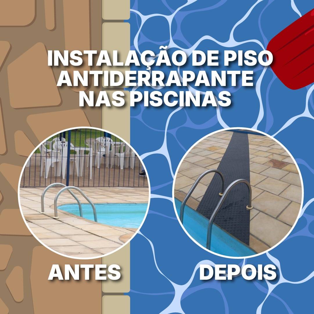 Foram instalados pisos antiderrapantes em volta das piscinas para a maior segurança dos filiados e filiadas.