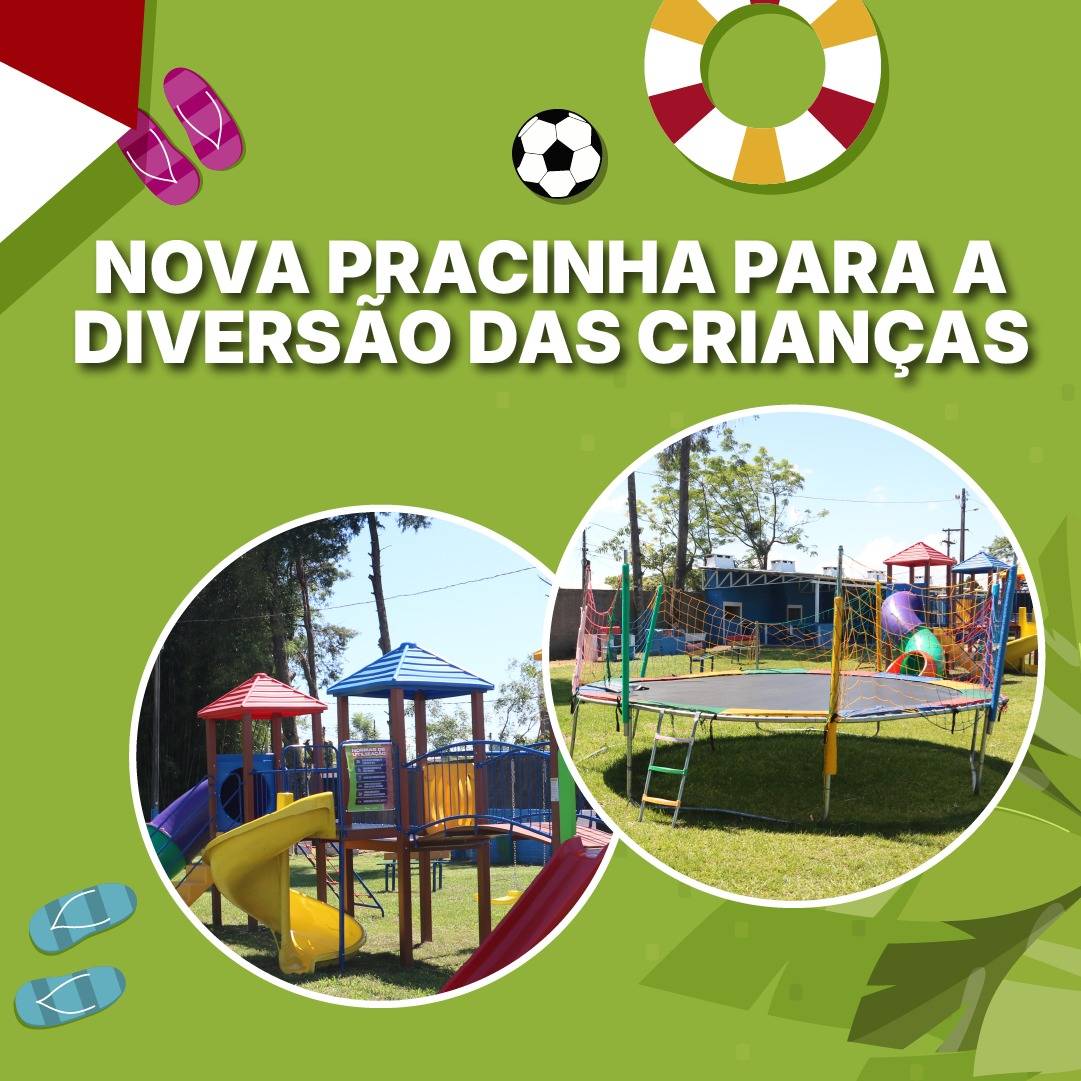A criançada também ganhou novidades. Foi instalado uma nova pracinha com novidade nos brinquedos para que as crianças aproveitem ao máximo a Sede.