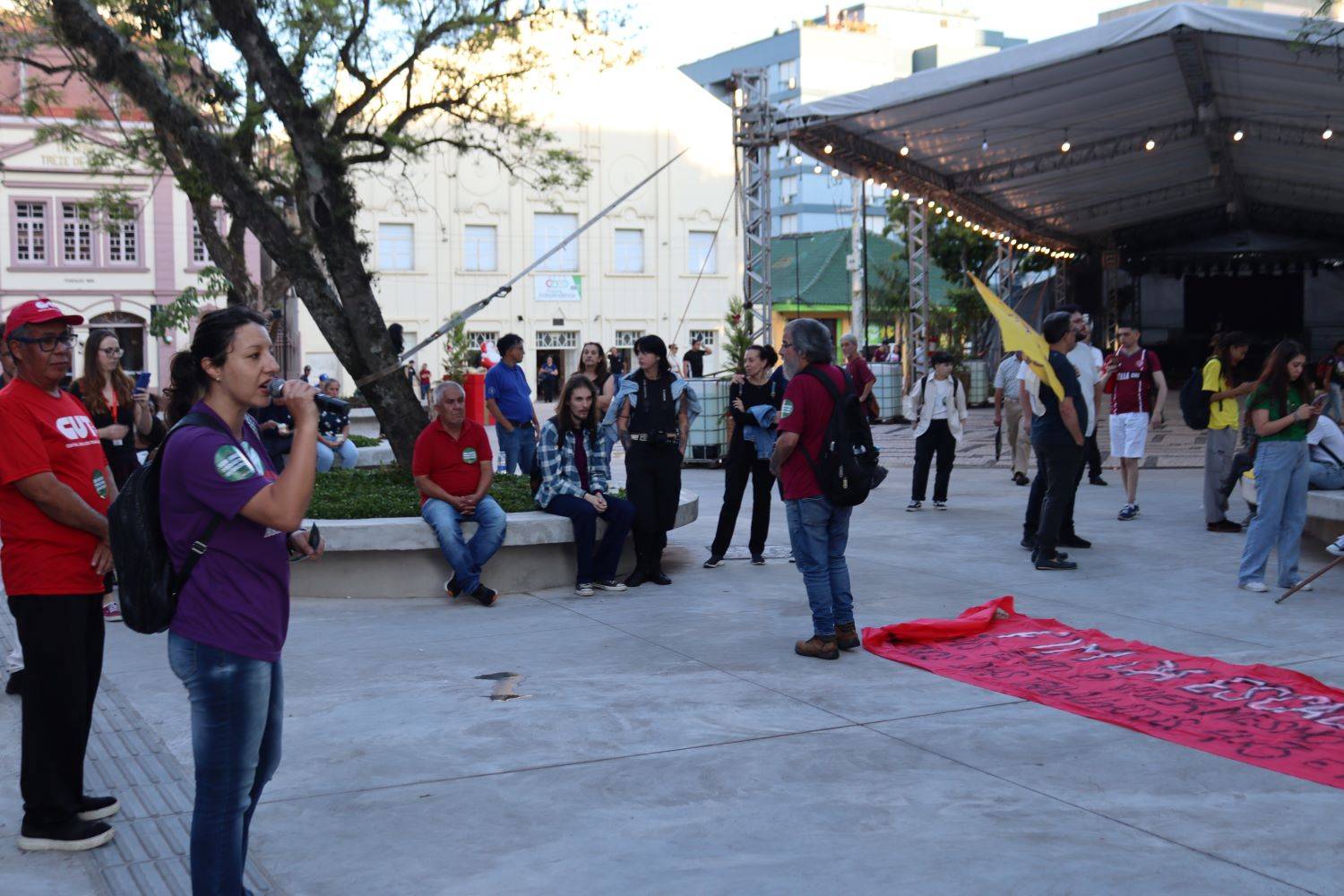 A coordenadora geral da Assufsm Natália San Martin esteve presente no Ato e em sua fala frisou que o ataque à democracia não deve passar impune. “A Assufsm sempre lutou pela democracia, sempre lutou contra golpistas. Temos que nos manter unidos e unidas, cada um fazendo a sua parte no dia a dia para mantermos a democracia neste país. As pessoas que querem ferir e envenenar a democracia devem ser punidas de forma coerente para que esse tipo de ato não aconteça e venha ferir a nossa dignidade e os Direitos Humanos”, comenta Natália.