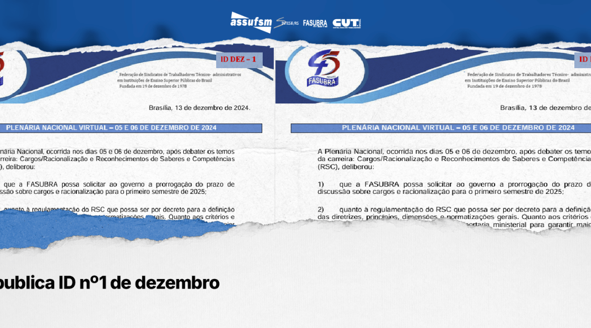 No ID tem informes e encaminhamentos sobre a Plenária Virtual da FASUBRA que ocorreu nos dias 5 e 6 de dezembro, a análise de conjuntura sobre a Plenária Virtual, informes sobre a reunião com o MGI, o balanço das negociações salariais entre a federação e o governo e o tradiconal calendário de lutas.