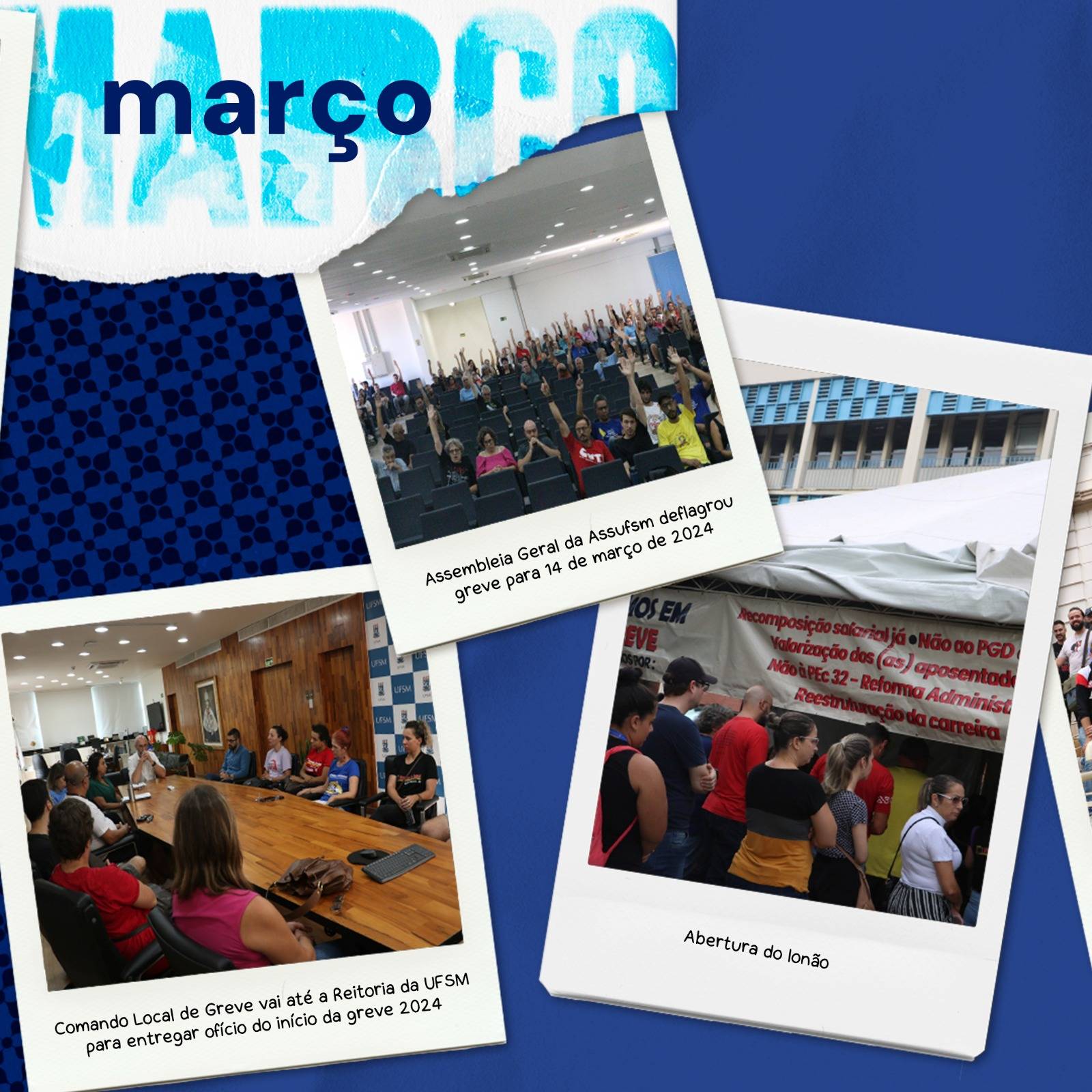O ano de 2024 iniciou com estado de greve na UFSM. Dentre algumas das reivindicações: sem debater adequadamente a reestruturação dos planos de carreira e a falta da recomposição salarial do Funcionalismo Público. Além disso, na UFSM, a categoria TAE também estava debatendo o Programa de Gestão e Desempenho, o PGD.