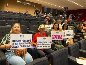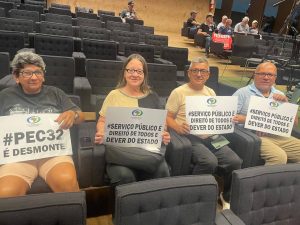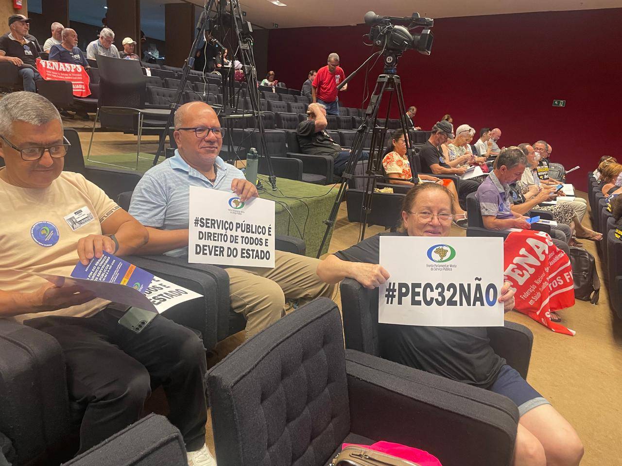 Já no auditório Nereu Ramos, na Câmara dos Deputados, caravaneiros(as) também acompanham o Seminário sobre o Regime Jurídico Único, promovido pela Frente Parlamentar em Defesa do Serviço Público. Você pode acompanhar a trasmissão ao vivo do fórum de discussão por aqui: https://www.facebook.com/watch/live/?ref=watch_permalink&v=1060720786094413&rdid=JGTM0ee61jvBetDW