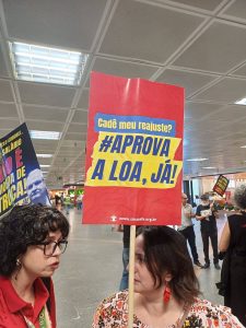Nesta terça-feira, Dia de Paralisação Nacional, caravaneiros(as) da Assufsm mobilizam-se em Brasília pela aprovação imediata da lei orçamentária (LOA 2025). A votação da proposta orçamentária chegou a ser anunciada para o dia de hoje, mas, em entrevista à Agência Senado, o senador e o relator da LOA 2025 Angelo Coronel, disse que a previsão de votação será no dia 17 de março. Apesar do pagamento retroativo a janeiro estar garantindo, se a LOA não for aprovada, o pagamento efetivo dos reajustes negociados com o funcionalismo ao longo de 2024 pode ser adiado para maio.