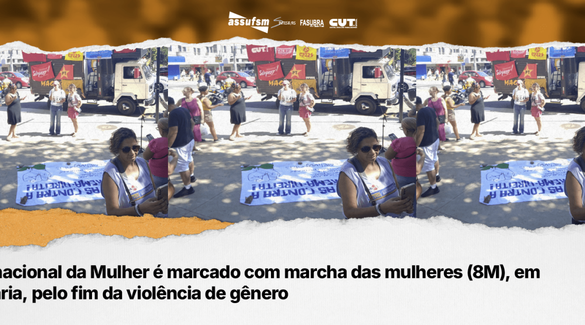 O ato reuniu cerca de 200 pessoas e foi marcado por faixas, cartazes, performances culturais e fortes depoimentos. A Assufsm esteve presente com a participação da Coordenadora Geral Natália San Martin e da Coordenadora de Formação Político Sindical Vanessa Kunz, em apoio à manifestação do 8M.