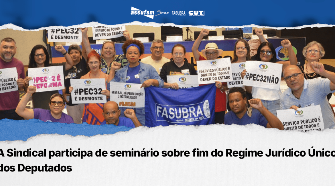 A FASUBRA marcou presença no seminário “O fim do Regime Jurídico Único dos servidores”, realizado no auditório Nereu Ramos, na Câmara dos Deputados, em Brasília, na manhã dessa terça-feira (11). O evento reuniu parlamentares, especialistas e representantes sindicais para debater os impactos da possível extinção do Regime Jurídico Único (RJU) dos servidores públicos. A proposta pode trazer mudanças significativas na estabilidade, direitos e estrutura das carreiras no serviço público. O evento foi transmitido ao vivo, veja aqui. A FASUBRA  reforça a importância da mobilização e do diálogo para defender os direitos dos trabalhadores técnico-administrativos em educação e garantir a manutenção de um serviço público de qualidade para a população. A Assufsm esteve presente com seus caravaneiros durante esse evento, veja aqui.