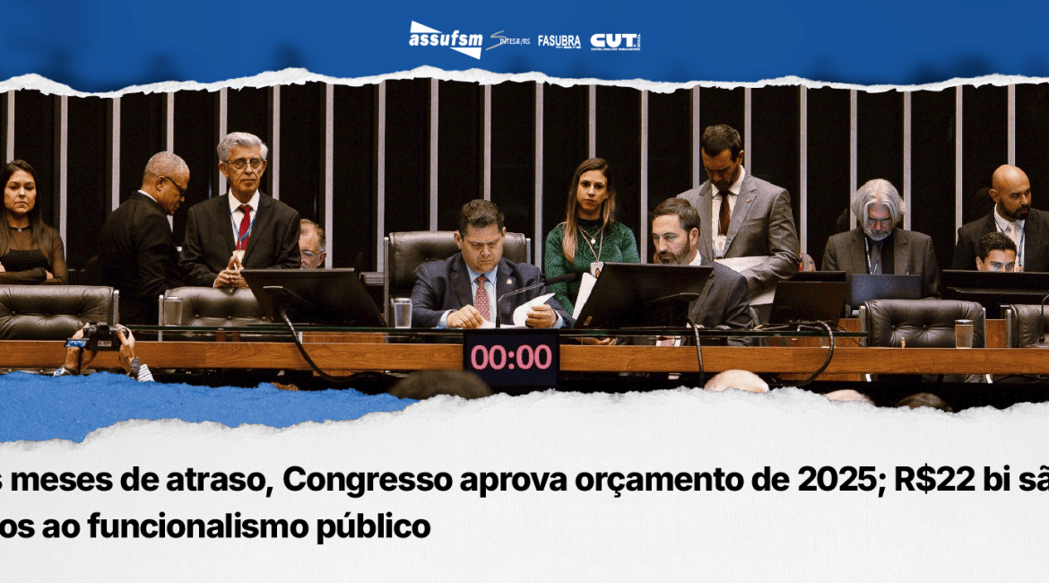 O Congresso Nacional aprovou, no início da tarde de quinta-feira (20), o projeto de lei orçamentária (LOA) de 2025 (PLN 26/2024), após muita pressão e mobilização do funcionalismo público na jornada de lutas em Brasília, onde a FASUBRA esteve constantemente presente, com suas bases e caravaneiros. O texto, aprovado três meses após o prazo, traz previsão de Orçamento total de R$ 5,8 trilhões, com um teto de despesas sujeitas ao arcabouço fiscal de R$ 2,2 trilhões e uma folga de recursos (superávit) estimada em R$ 15 bilhões.