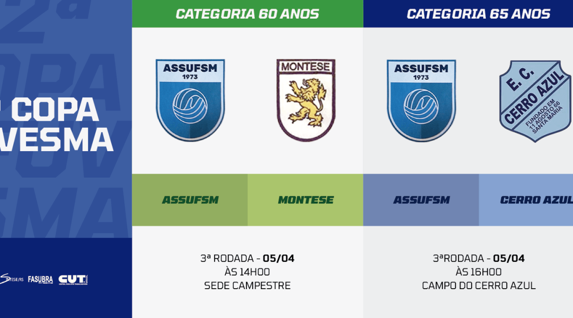 Na 2° rodada, do dia 29/03, a categoria 65 anos da ASSUFSM ganhou de 3X1 do Santa Maria/Mustang, já a categoria 60 anos folgou na rodada.